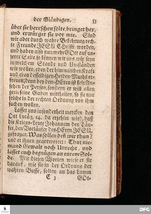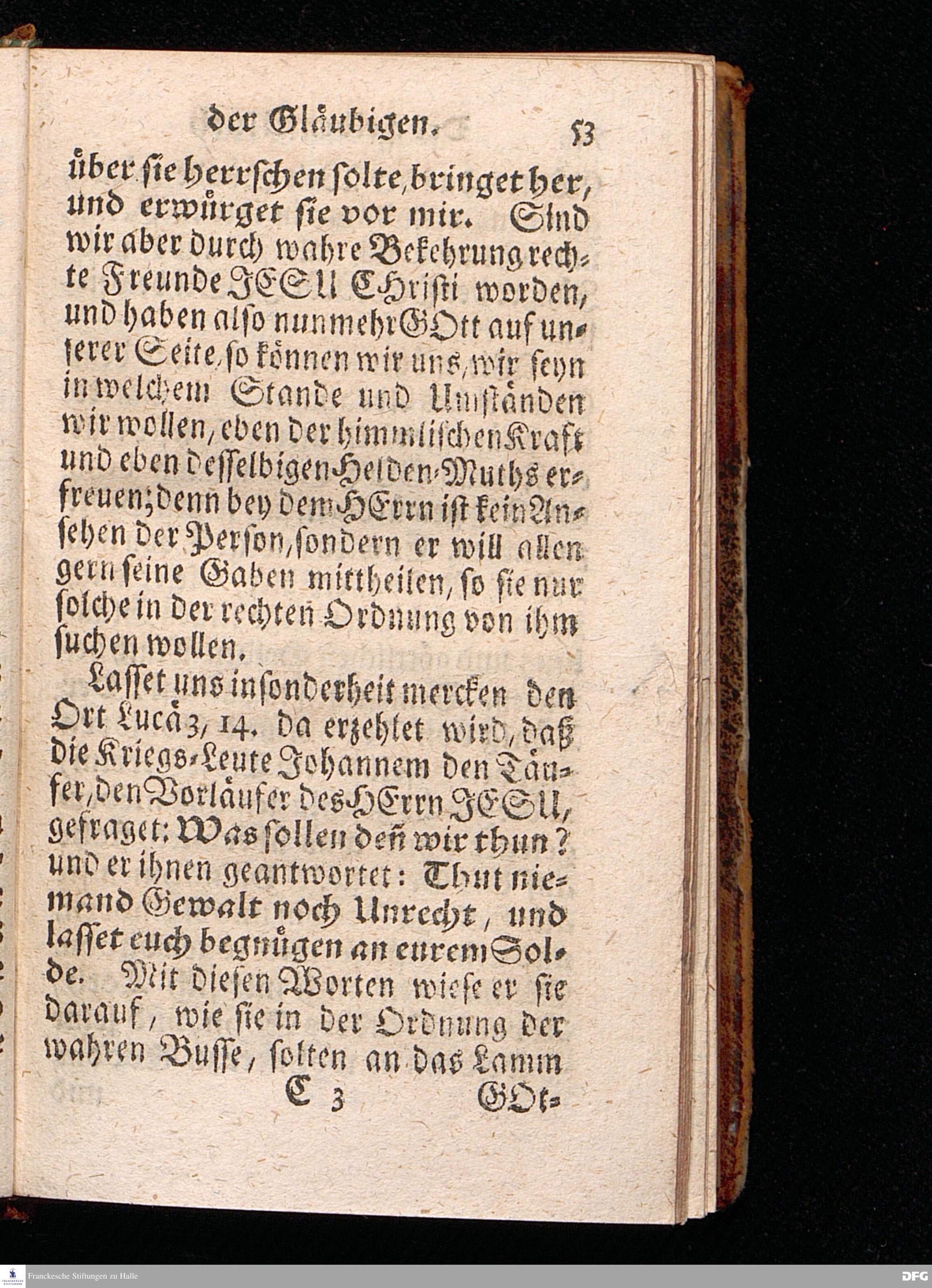 Der Helden=Muth der Gläubigen, In einer vor dem hier versammleten Hochfürstlichen Dessauischen Regiment, am Sonntag Jubilate 1720. gehaltenen Predigt / aus denen dazu vorgeschriebenen Text=Worten, Luc.XII,1--5. in der Schul=Kirche zu Halle vorgestellet von August Hermann Francken / S.Th.Prof.Past.Vlr.& Schol. Andere Auflage. HALLE, gedruckt im Wäysen=Hause. MDCCXXIII.