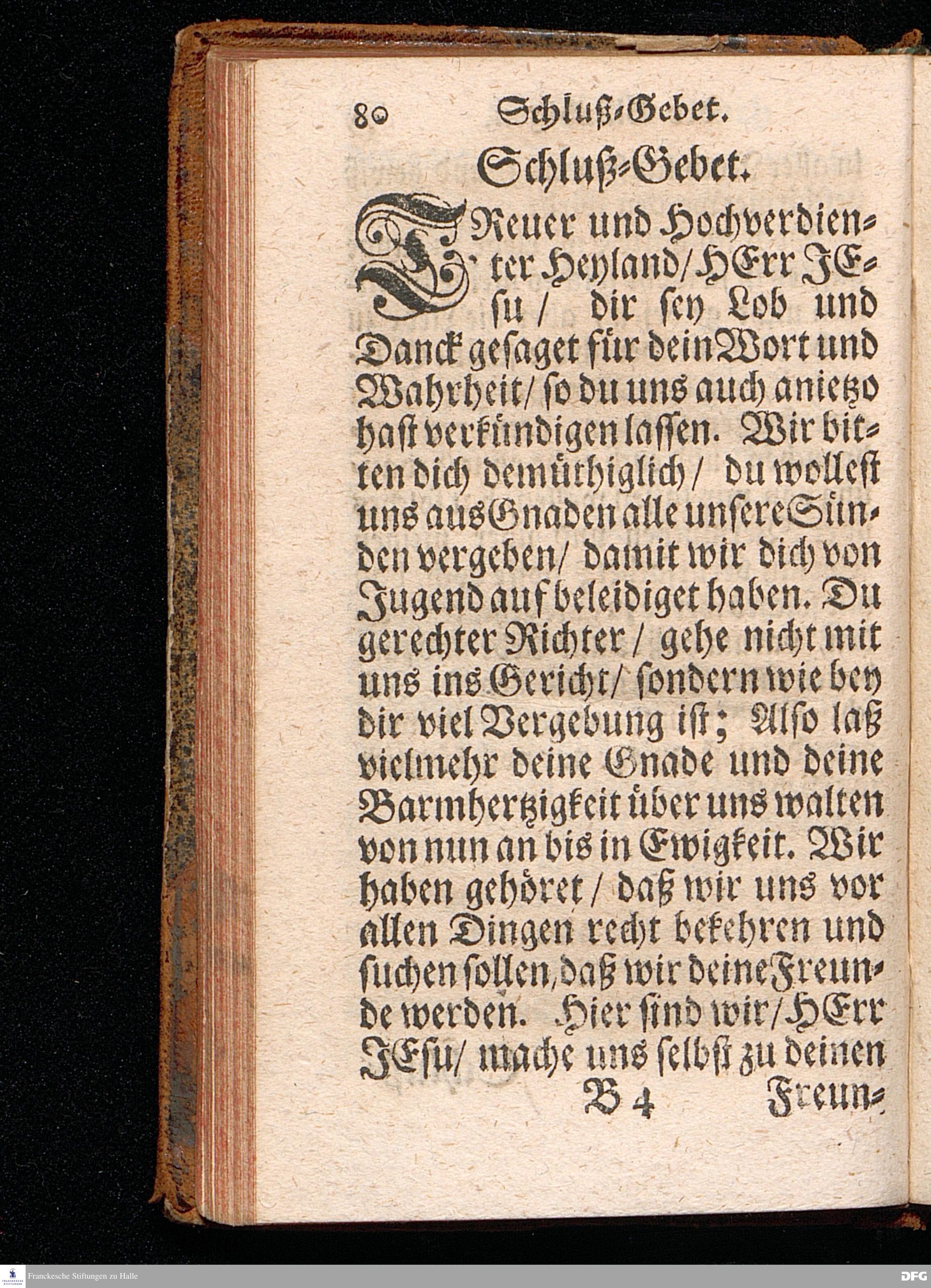 Der Helden=Muth der Gläubigen, In einer vor dem hier versammleten Hochfürstlichen Dessauischen Regiment, am Sonntag Jubilate 1720. gehaltenen Predigt / aus denen dazu vorgeschriebenen Text=Worten, Luc.XII,1--5. in der Schul=Kirche zu Halle vorgestellet von August Hermann Francken / S.Th.Prof.Past.Vlr.& Schol. Andere Auflage. HALLE, gedruckt im Wäysen=Hause. MDCCXXIII.