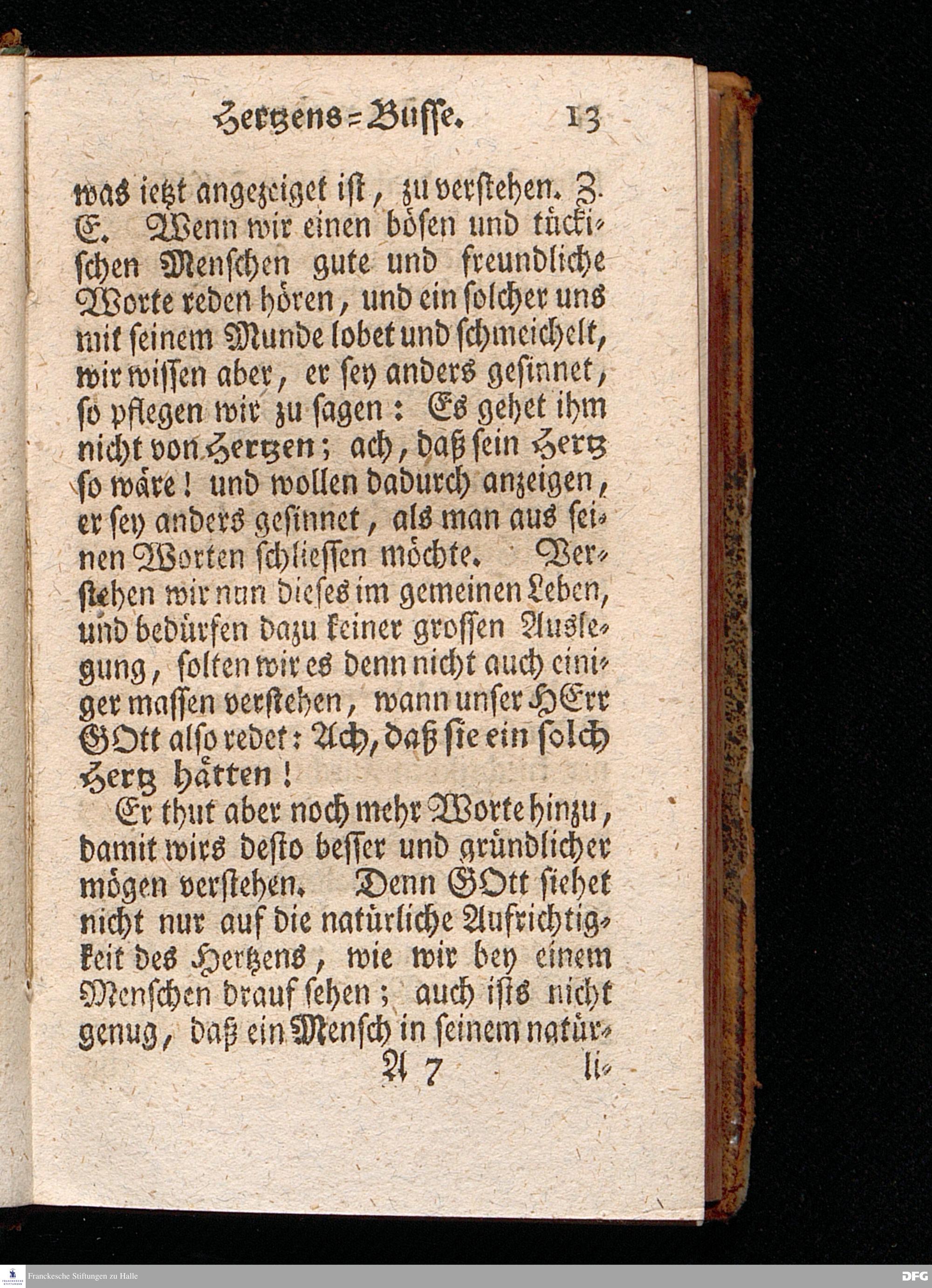 Die wahre Hertzens=Busse Aus den Worten des HErrn Im 5.Buch Mos. V,29. [Bibelzitat.] Am Buß=Tage den 14.Iun.1713. In der St.Georgen=Kirche zu Glaucha vorgestellet von August Hermann Francken, S.Th.Prof.Past.zu St.Ulrich, und des Gymnasii Scholarcha. Dritte Auflage. Der Jugend in den Schulen des Wäysenhauses, nach gehaltenem Examine, den 19.Aug.gedachten Jahres ausgetheilet. HALLE, In Verlegung des Wäysenhauses, 1740.