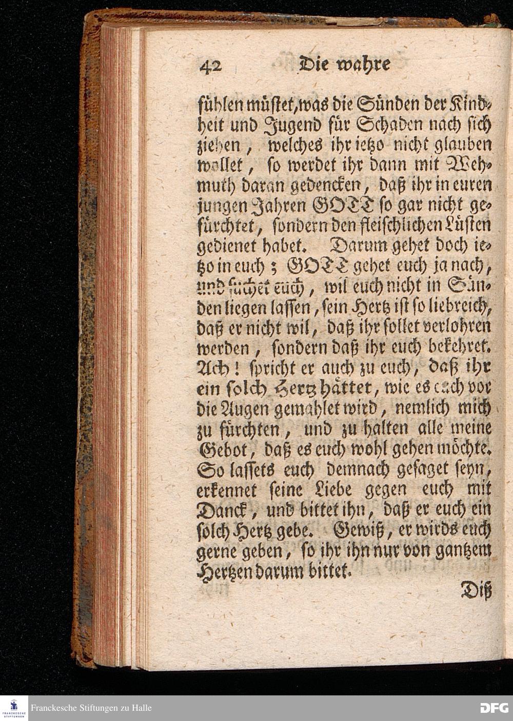 Die wahre Hertzens=Busse Aus den Worten des HErrn Im 5.Buch Mos. V,29. [Bibelzitat.] Am Buß=Tage den 14.Iun.1713. In der St.Georgen=Kirche zu Glaucha vorgestellet von August Hermann Francken, S.Th.Prof.Past.zu St.Ulrich, und des Gymnasii Scholarcha. Dritte Auflage. Der Jugend in den Schulen des Wäysenhauses, nach gehaltenem Examine, den 19.Aug.gedachten Jahres ausgetheilet. HALLE, In Verlegung des Wäysenhauses, 1740.