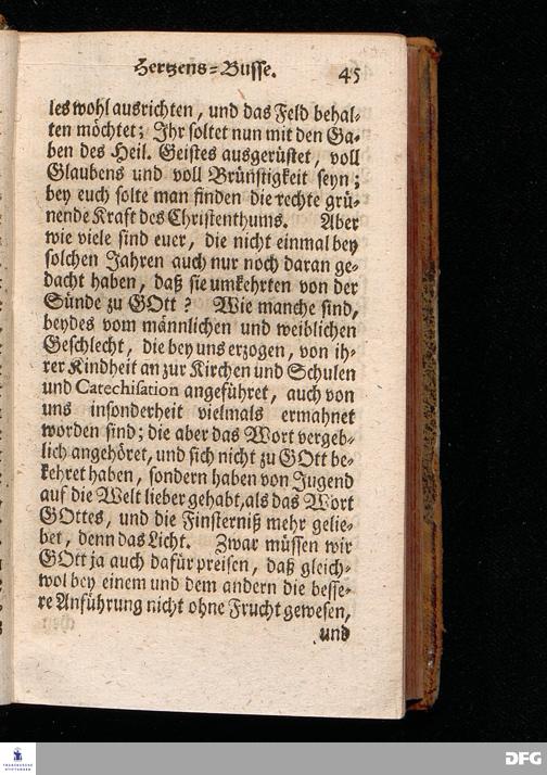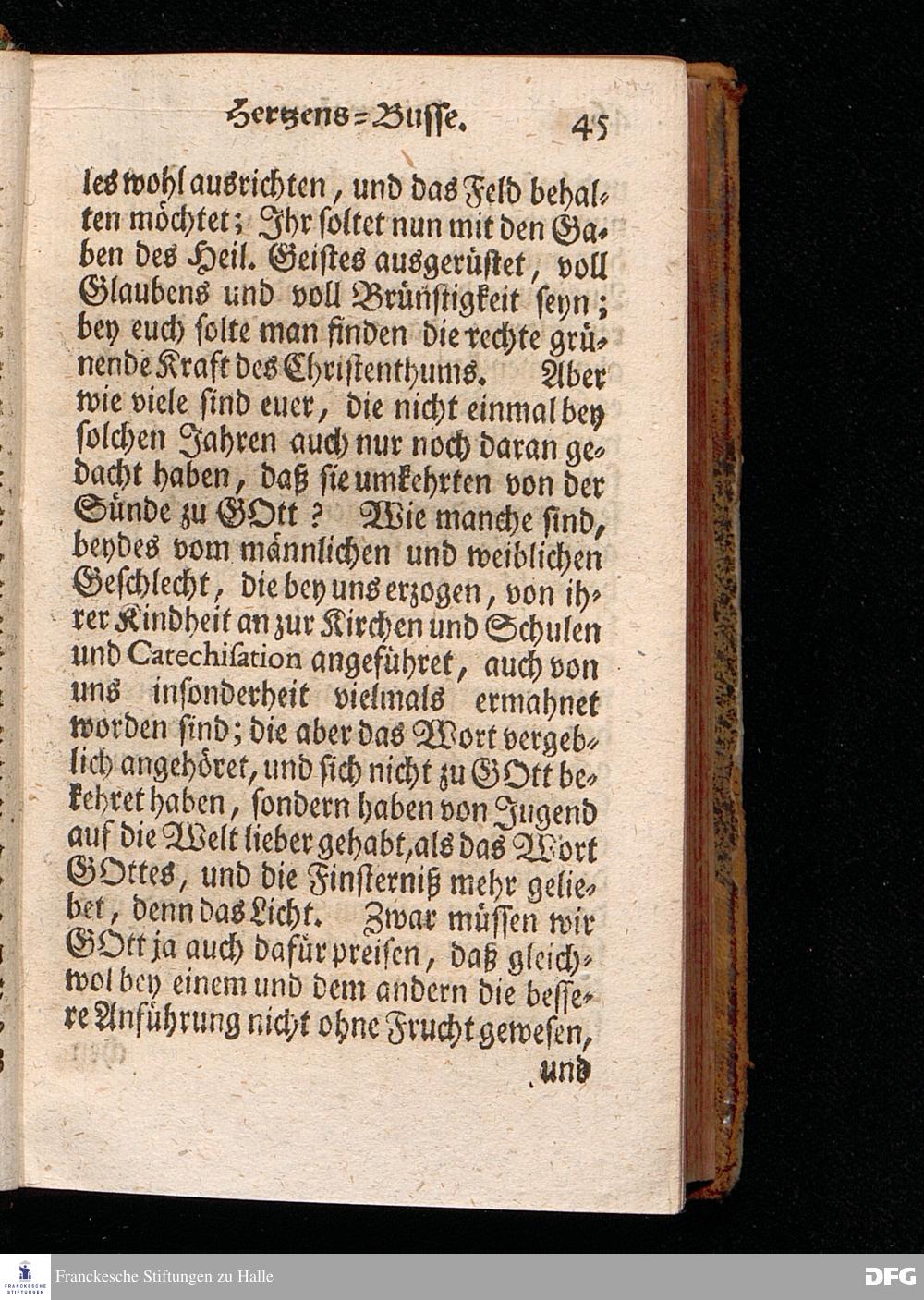 Die wahre Hertzens=Busse Aus den Worten des HErrn Im 5.Buch Mos. V,29. [Bibelzitat.] Am Buß=Tage den 14.Iun.1713. In der St.Georgen=Kirche zu Glaucha vorgestellet von August Hermann Francken, S.Th.Prof.Past.zu St.Ulrich, und des Gymnasii Scholarcha. Dritte Auflage. Der Jugend in den Schulen des Wäysenhauses, nach gehaltenem Examine, den 19.Aug.gedachten Jahres ausgetheilet. HALLE, In Verlegung des Wäysenhauses, 1740.