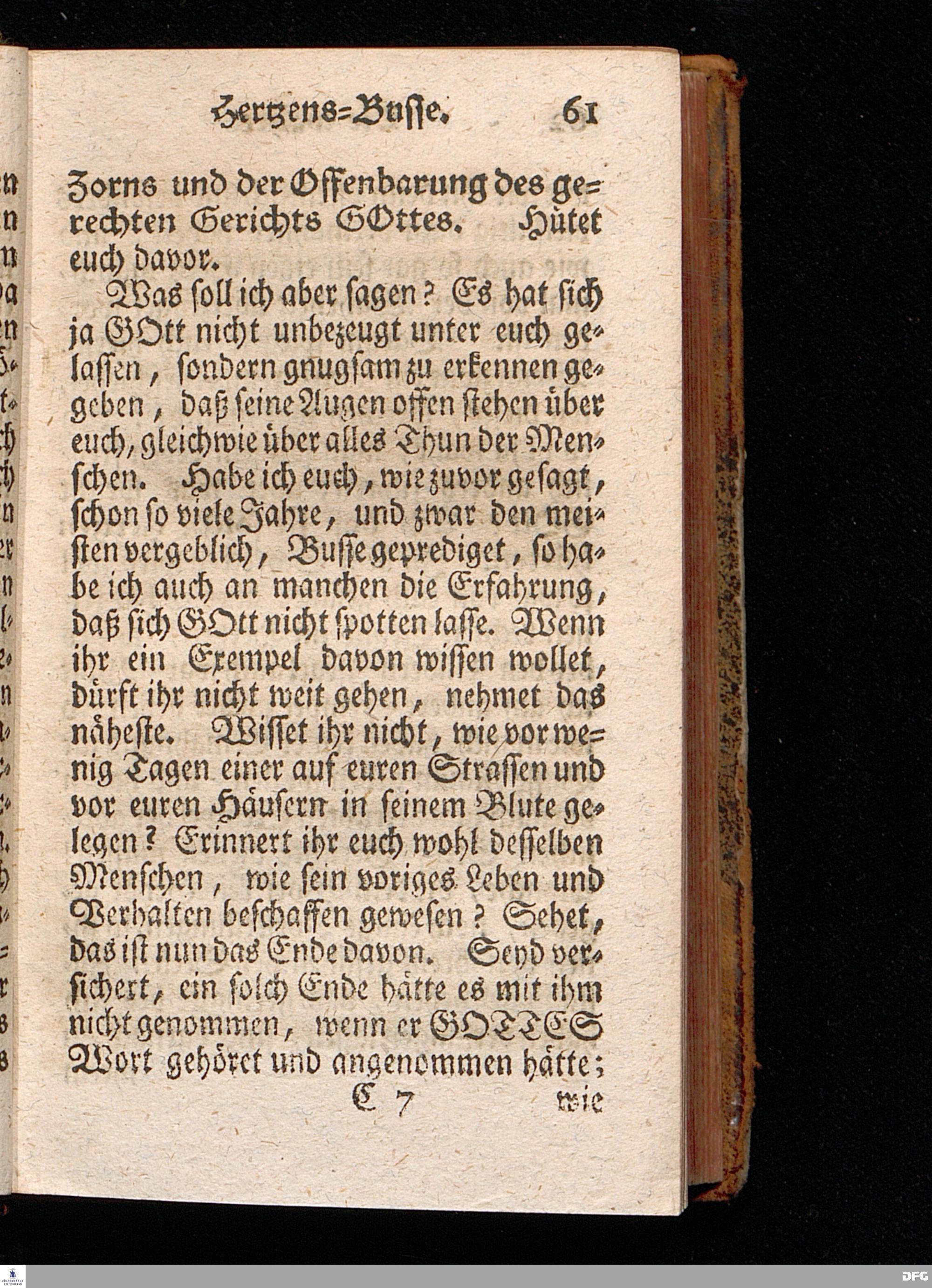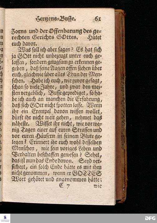 Die wahre Hertzens=Busse Aus den Worten des HErrn Im 5.Buch Mos. V,29. [Bibelzitat.] Am Buß=Tage den 14.Iun.1713. In der St.Georgen=Kirche zu Glaucha vorgestellet von August Hermann Francken, S.Th.Prof.Past.zu St.Ulrich, und des Gymnasii Scholarcha. Dritte Auflage. Der Jugend in den Schulen des Wäysenhauses, nach gehaltenem Examine, den 19.Aug.gedachten Jahres ausgetheilet. HALLE, In Verlegung des Wäysenhauses, 1740.