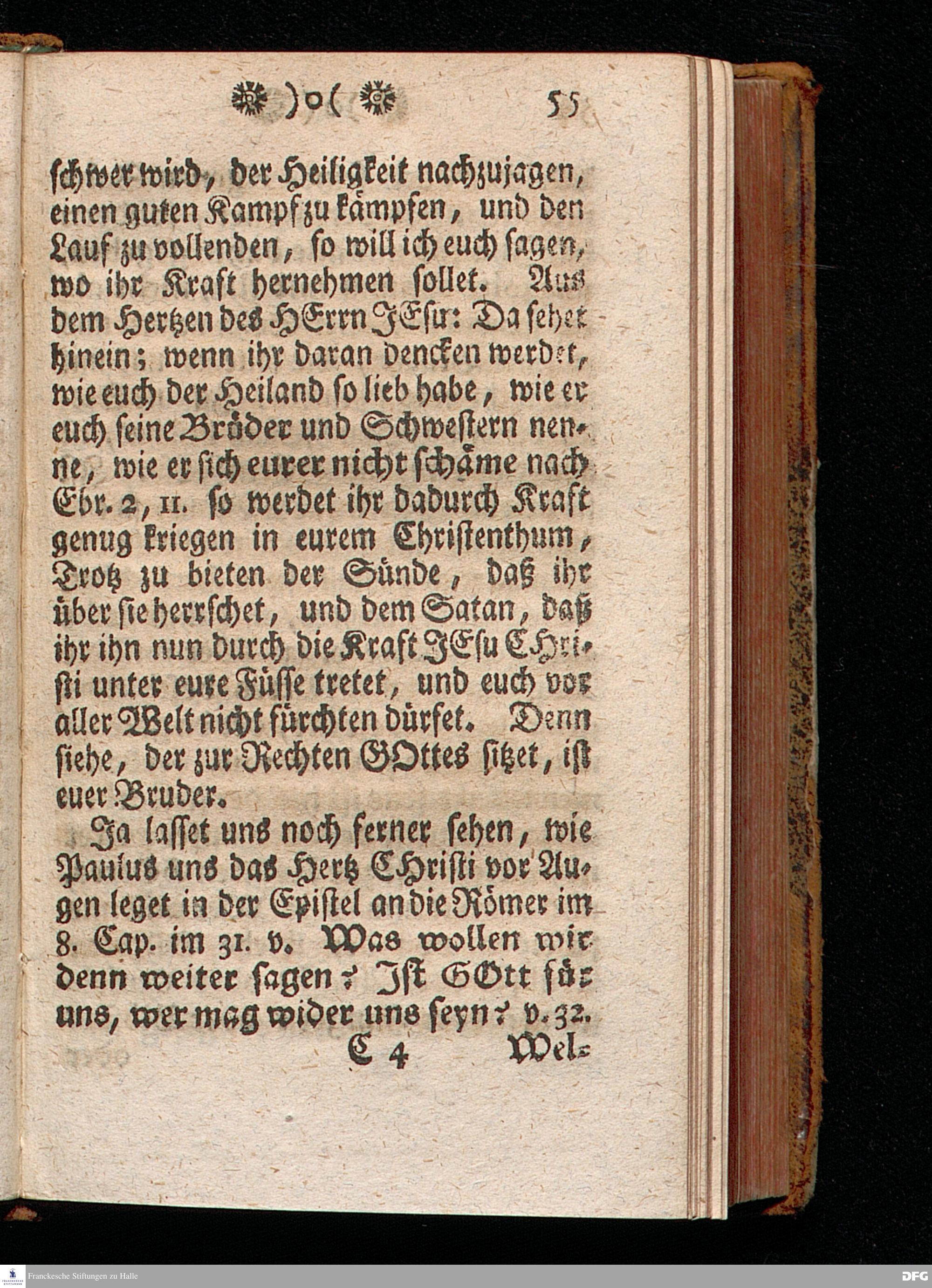 Das Hertz des auferstandenen JESU, vorgestellet in einer Am andern Oster=Tage ANNO 1707. In der Schul=Kirchen zu Halle, über Joh.XX, 17. gehaltenen und nach dem Examine der Schul=Jugend in dem Wäysen=Hause den 18 May Ausgetheilten Predigt, von August Hermann Francken, S.Th.Prof.Ord.Past.Vlric.und Scholarcha. Dritte Auflage. HALLE, in Verlegung des Wäysen=Hauses, MDCCXXXXI.