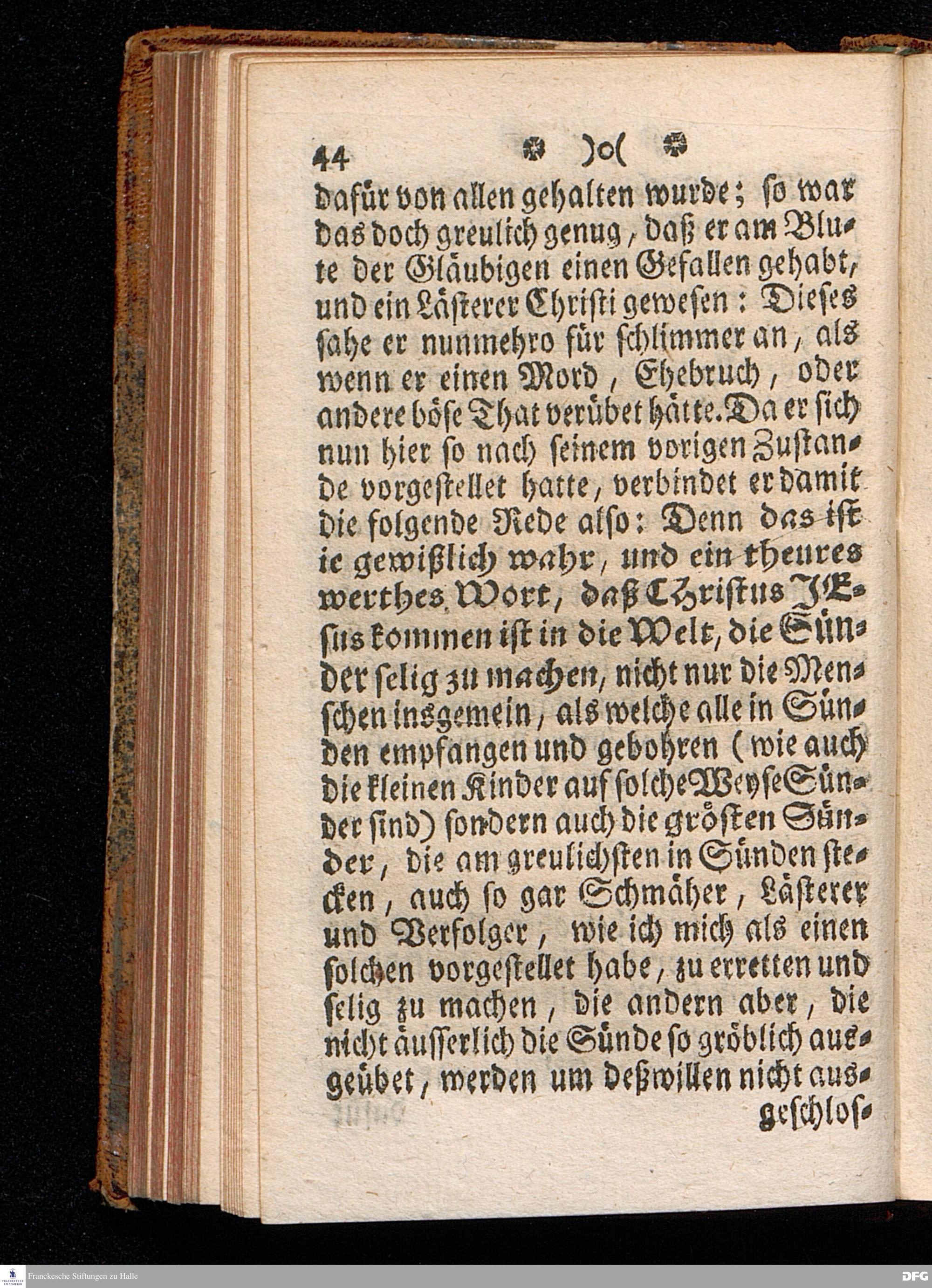Der Kern=Spruch PAULI, I.Tim.1, 15. Das ist ie gewißlich wahr, und ein theuer werthes Wort, daß Christus JEsus kommen ist in die Welt, die Sünder selig zu machen; ausgeleget, Und zur Vorbereitung aufs Heil. Weynacht=-Fest / mithin zur Aufforderung aller / auch der grösten Sünder / zu ihrer wahren Bekehrung / Wie auch zur allgemeinen Erbauung angewendet, und vorgetragen, Im Wäysenhause zu Glaucha an Halle, den 23.Decembr.1712. von August Hermann Francken / S.Th.Prof.Ord.Past.Vlric. und Schol. Dritte Auflage. HALLE, In Verlegung des Wäysenhauses, MDCCXXIX.