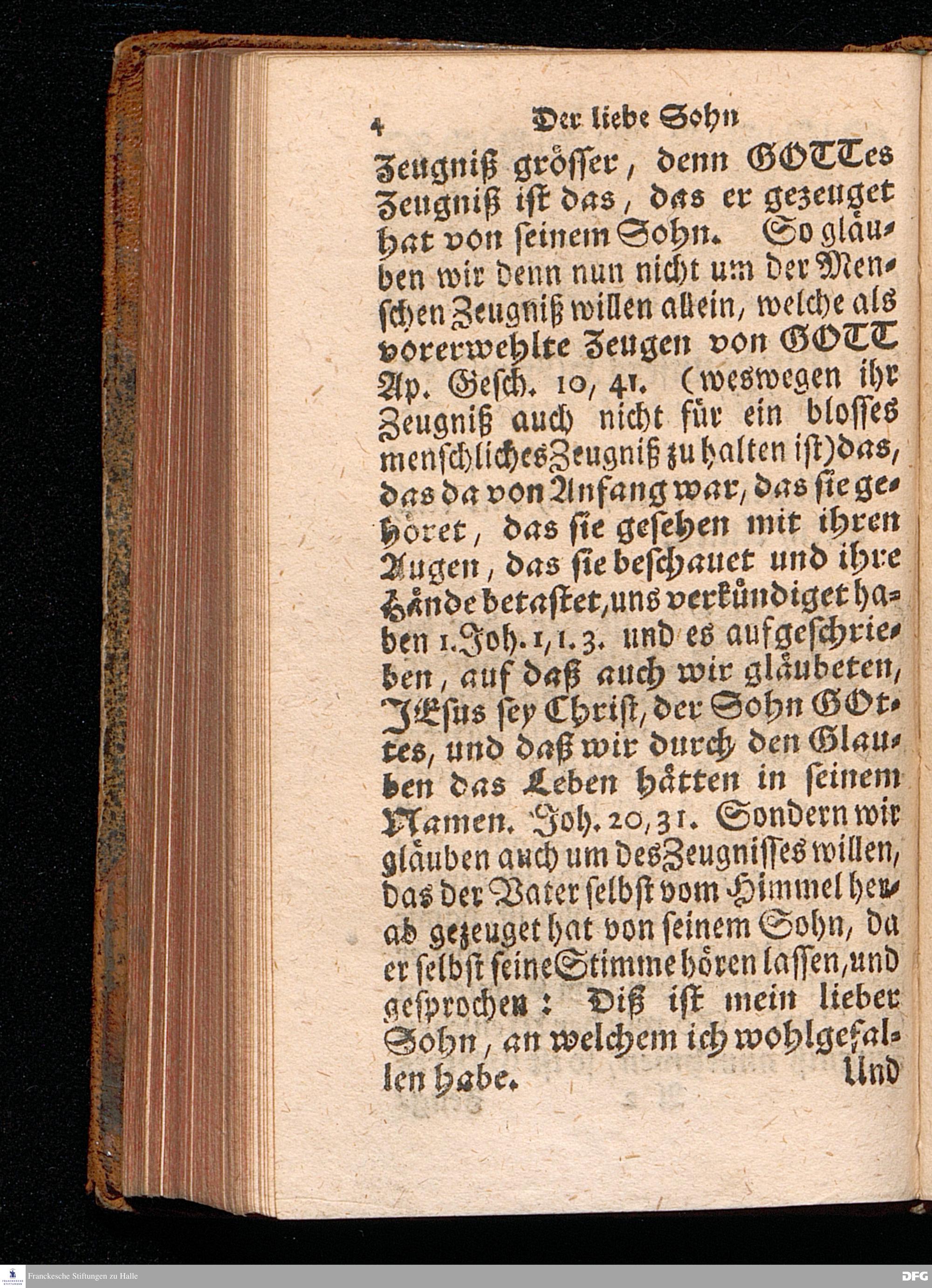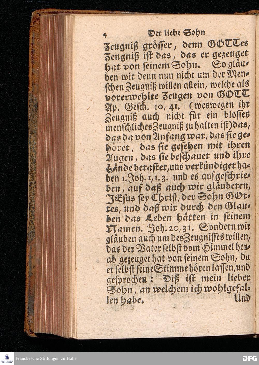 Der Liebe Sohn des himmlischen VATERS, an welchem er Wohlgefallen hat, In einer Predigt über den Evangelischen Text Matth.III, v.13-17. In der St.Georgen=Kirche zu Glaucha an Halle Am I.Sonntage nach Epiph. 1715. vorgestellet von August Hermann Francken / S.Th.Prof.& Past.zu S.Ulrich, und des Gymnasii Scholarcha. Andere Auflage. Der Jugend in den Schulen des Waysenhauses, nach gehaltenem Examine den 10ten April.ausgetheilet.1723. HALLE, In Verlegung des Wäysen=Hauses. 1723.