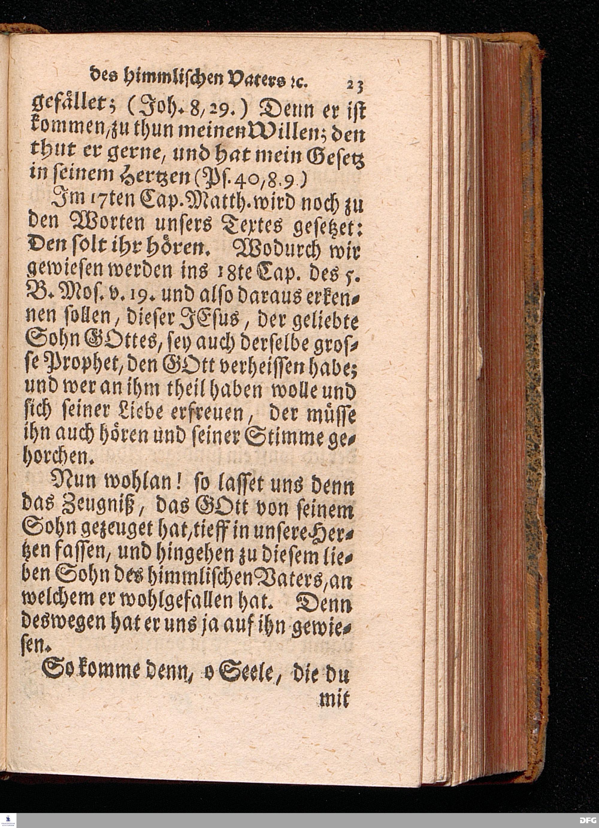 Der Liebe Sohn des himmlischen VATERS, an welchem er Wohlgefallen hat, In einer Predigt über den Evangelischen Text Matth.III, v.13-17. In der St.Georgen=Kirche zu Glaucha an Halle Am I.Sonntage nach Epiph. 1715. vorgestellet von August Hermann Francken / S.Th.Prof.& Past.zu S.Ulrich, und des Gymnasii Scholarcha. Andere Auflage. Der Jugend in den Schulen des Waysenhauses, nach gehaltenem Examine den 10ten April.ausgetheilet.1723. HALLE, In Verlegung des Wäysen=Hauses. 1723.