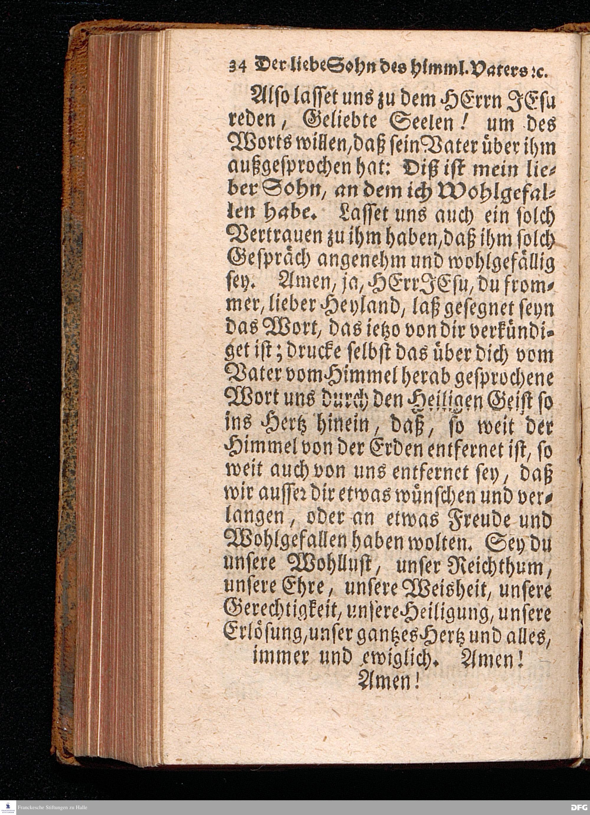 Der Liebe Sohn des himmlischen VATERS, an welchem er Wohlgefallen hat, In einer Predigt über den Evangelischen Text Matth.III, v.13-17. In der St.Georgen=Kirche zu Glaucha an Halle Am I.Sonntage nach Epiph. 1715. vorgestellet von August Hermann Francken / S.Th.Prof.& Past.zu S.Ulrich, und des Gymnasii Scholarcha. Andere Auflage. Der Jugend in den Schulen des Waysenhauses, nach gehaltenem Examine den 10ten April.ausgetheilet.1723. HALLE, In Verlegung des Wäysen=Hauses. 1723.