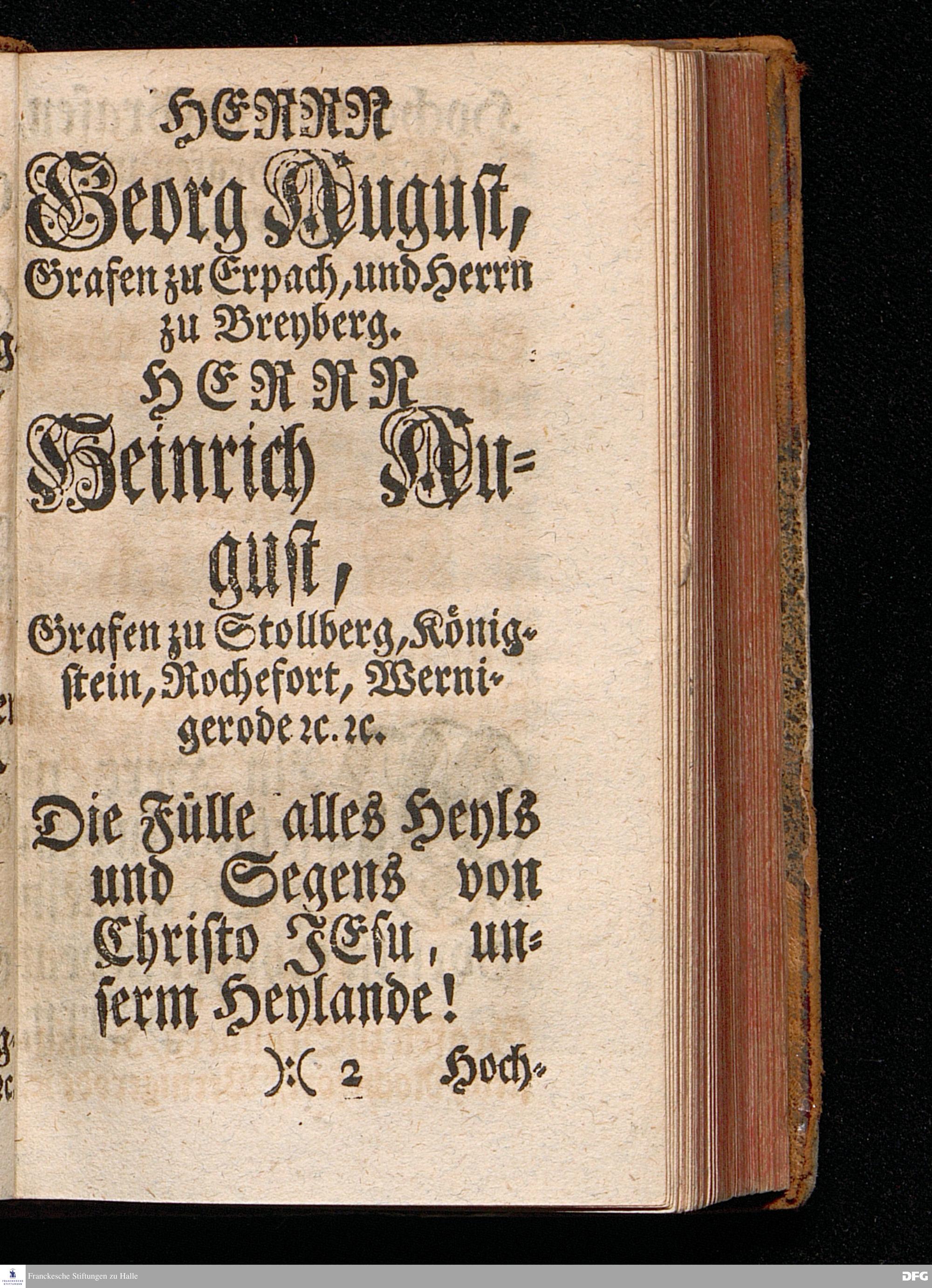 Des Namens JESU Herrliche Bedeutung, rechter Gebrauch, wie auch Segens= und Lebens=volle Kraft, In einer Predigt über den Evangelischen Text Luc.II. v.21. In der St.Georgen=Kirche zu Glaucha an Halle Am neuen Jahrs=Tage 1715. vorgestellet Von August Hermann Francken, S.Theol.Prof.Ord.& Past.Ulric. Andere Auflage. HALLE, In Verlegung des Wäysenhauses, 1742.