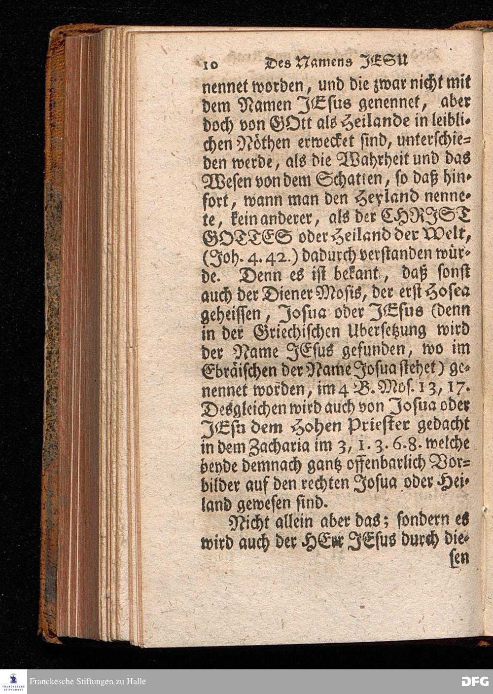 Des Namens JESU Herrliche Bedeutung, rechter Gebrauch, wie auch Segens= und Lebens=volle Kraft, In einer Predigt über den Evangelischen Text Luc.II. v.21. In der St.Georgen=Kirche zu Glaucha an Halle Am neuen Jahrs=Tage 1715. vorgestellet Von August Hermann Francken, S.Theol.Prof.Ord.& Past.Ulric. Andere Auflage. HALLE, In Verlegung des Wäysenhauses, 1742.