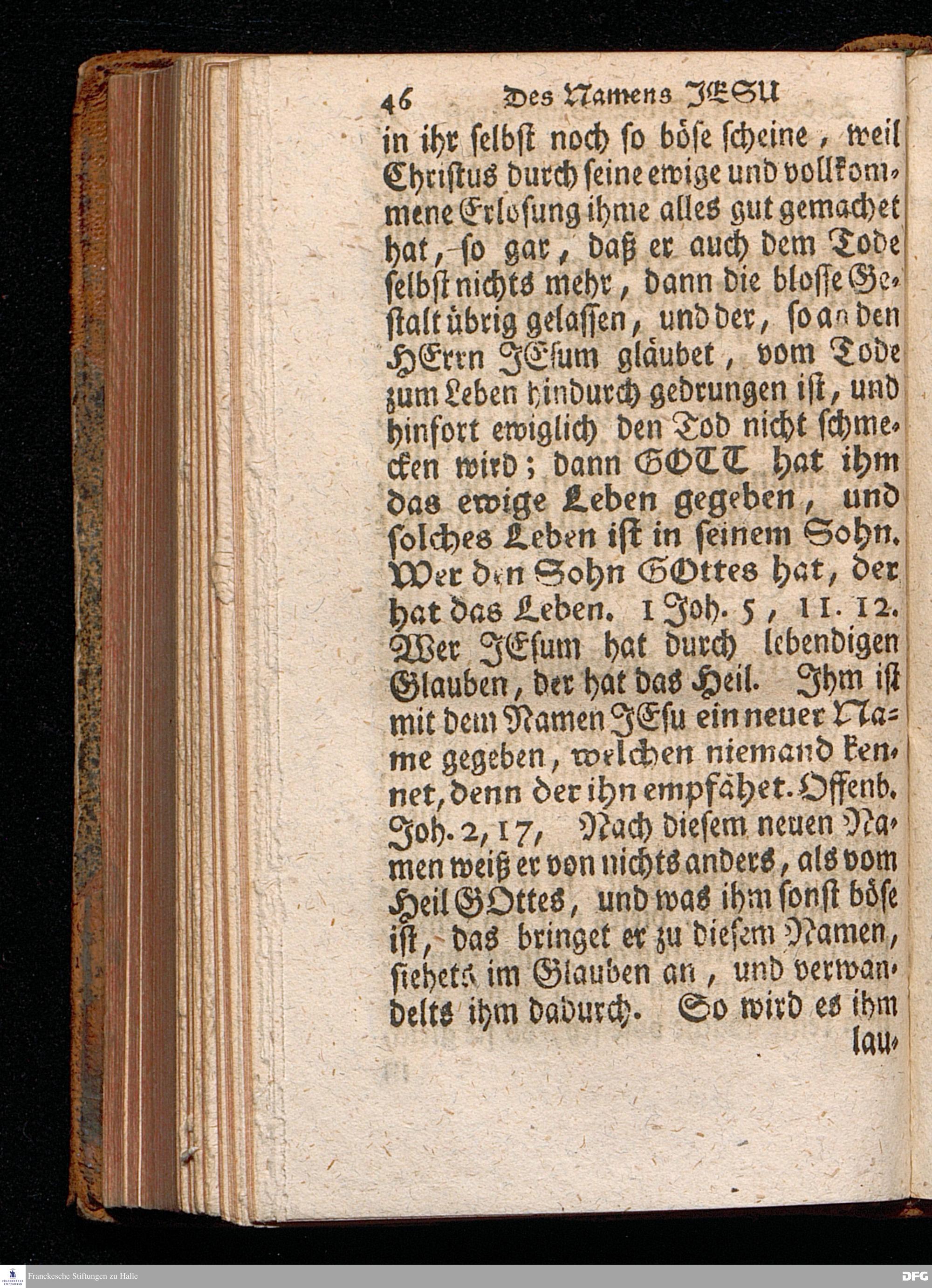 Des Namens JESU Herrliche Bedeutung, rechter Gebrauch, wie auch Segens= und Lebens=volle Kraft, In einer Predigt über den Evangelischen Text Luc.II. v.21. In der St.Georgen=Kirche zu Glaucha an Halle Am neuen Jahrs=Tage 1715. vorgestellet Von August Hermann Francken, S.Theol.Prof.Ord.& Past.Ulric. Andere Auflage. HALLE, In Verlegung des Wäysenhauses, 1742.