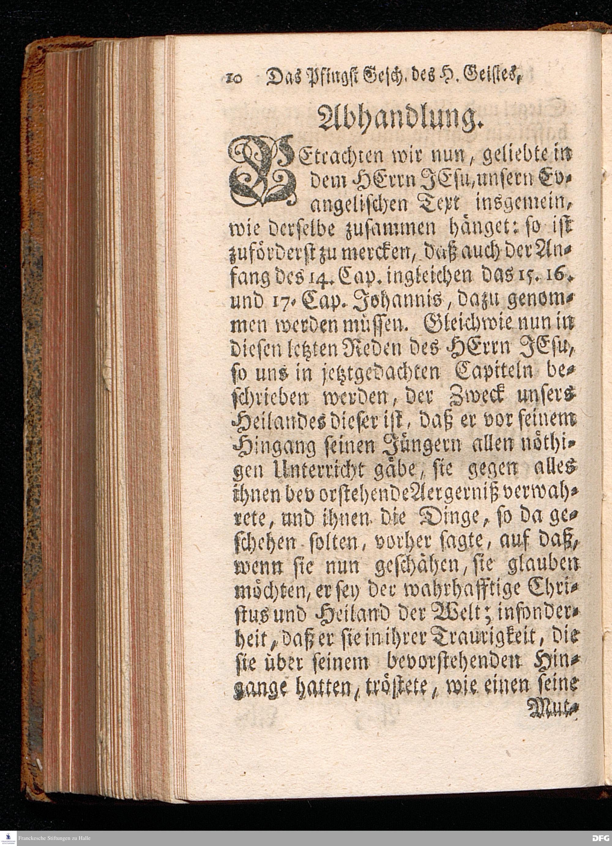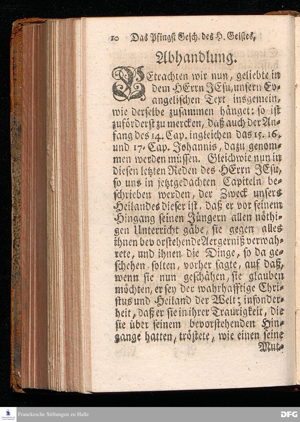Das Eigentliche Pfingst=Geschäfte Des Heiligen Geistes, Welches ist JESUM CHristum bey denen Menschen zu verklären, Aus dem Evangelischen Text Joh.XIV, 23-31. Am I.Pfingst=Tage MDCCXIV. In der S.Georgen=Kirche zu Glaucha an Halle vorgestellet von August Hermann Francken, S.Theol.Pr.Ord.Past.Vlr.& Sch. Andere Auflage. HALLE, in Verlegung des Wäysenhauses. 1724.