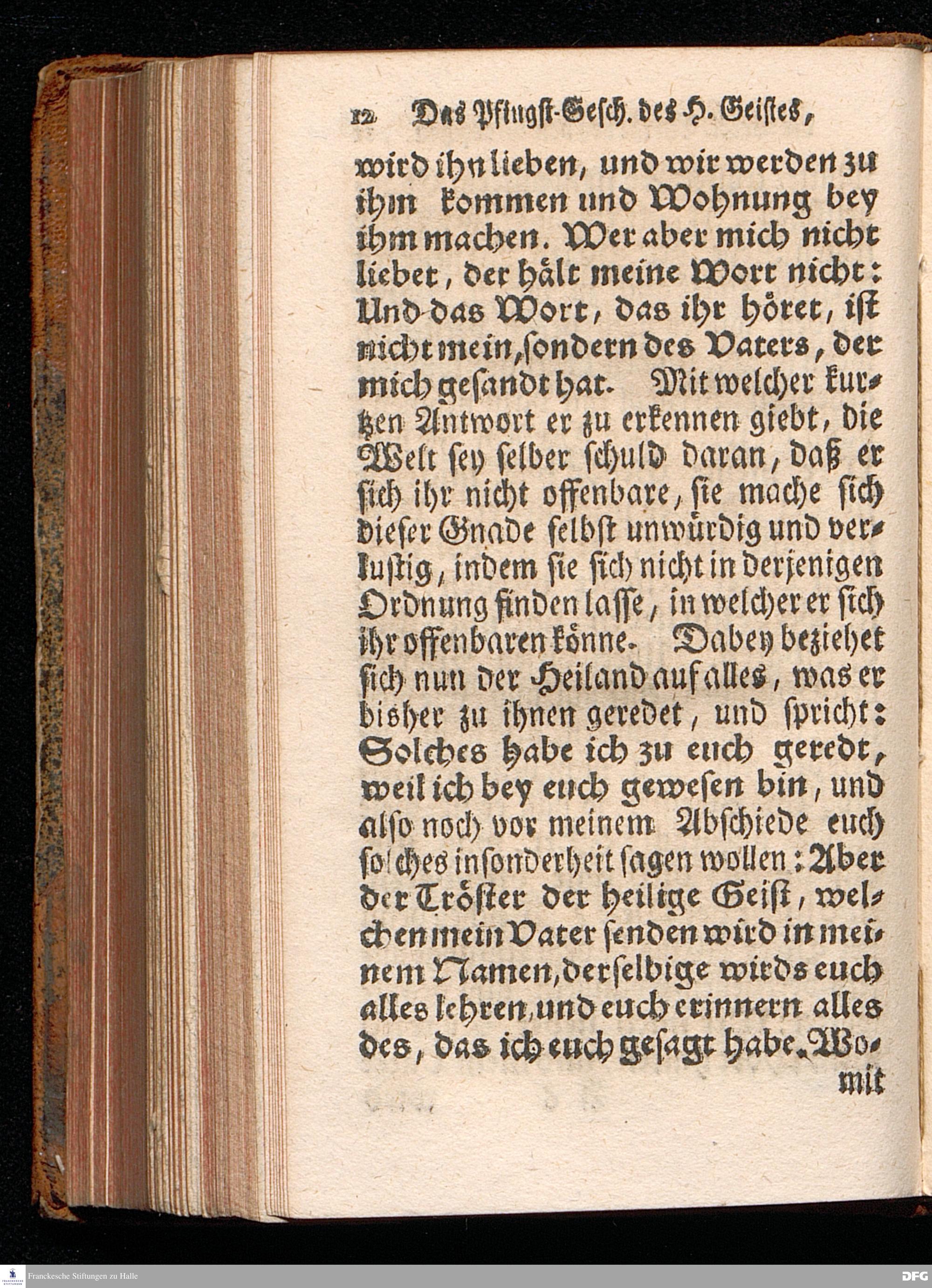 Das Eigentliche Pfingst=Geschäfte Des Heiligen Geistes, Welches ist JESUM CHristum bey denen Menschen zu verklären, Aus dem Evangelischen Text Joh.XIV, 23-31. Am I.Pfingst=Tage MDCCXIV. In der S.Georgen=Kirche zu Glaucha an Halle vorgestellet von August Hermann Francken, S.Theol.Pr.Ord.Past.Vlr.& Sch. Andere Auflage. HALLE, in Verlegung des Wäysenhauses. 1724.