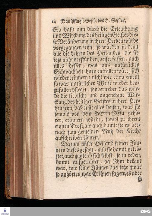 Das Eigentliche Pfingst=Geschäfte Des Heiligen Geistes, Welches ist JESUM CHristum bey denen Menschen zu verklären, Aus dem Evangelischen Text Joh.XIV, 23-31. Am I.Pfingst=Tage MDCCXIV. In der S.Georgen=Kirche zu Glaucha an Halle vorgestellet von August Hermann Francken, S.Theol.Pr.Ord.Past.Vlr.& Sch. Andere Auflage. HALLE, in Verlegung des Wäysenhauses. 1724.