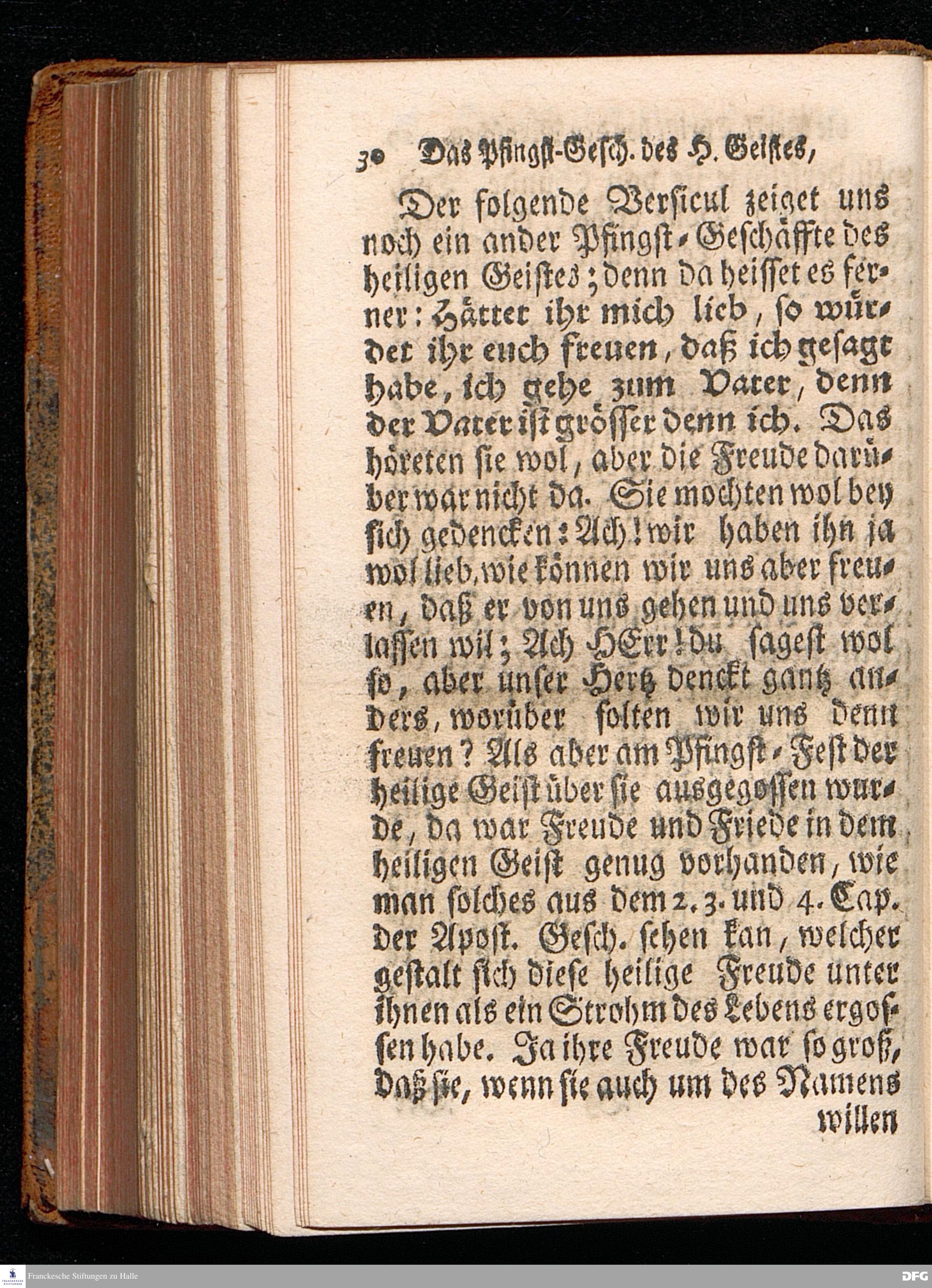 Das Eigentliche Pfingst=Geschäfte Des Heiligen Geistes, Welches ist JESUM CHristum bey denen Menschen zu verklären, Aus dem Evangelischen Text Joh.XIV, 23-31. Am I.Pfingst=Tage MDCCXIV. In der S.Georgen=Kirche zu Glaucha an Halle vorgestellet von August Hermann Francken, S.Theol.Pr.Ord.Past.Vlr.& Sch. Andere Auflage. HALLE, in Verlegung des Wäysenhauses. 1724.