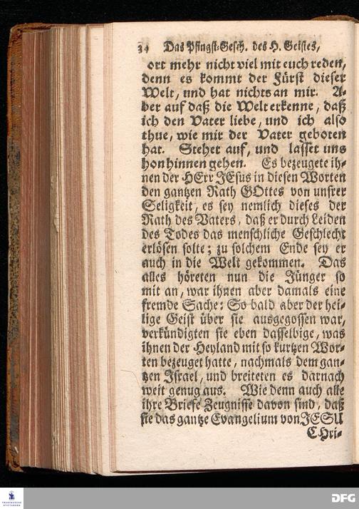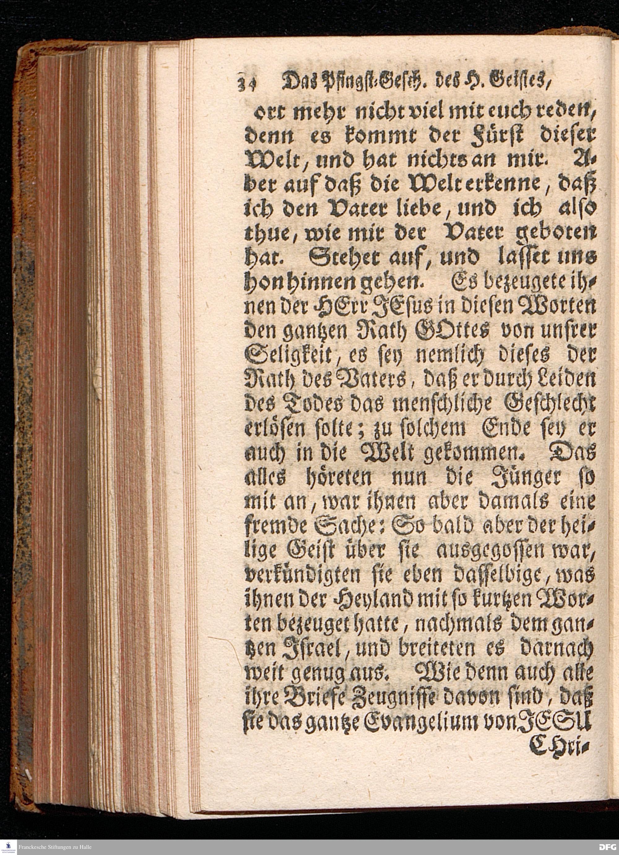 Das Eigentliche Pfingst=Geschäfte Des Heiligen Geistes, Welches ist JESUM CHristum bey denen Menschen zu verklären, Aus dem Evangelischen Text Joh.XIV, 23-31. Am I.Pfingst=Tage MDCCXIV. In der S.Georgen=Kirche zu Glaucha an Halle vorgestellet von August Hermann Francken, S.Theol.Pr.Ord.Past.Vlr.& Sch. Andere Auflage. HALLE, in Verlegung des Wäysenhauses. 1724.