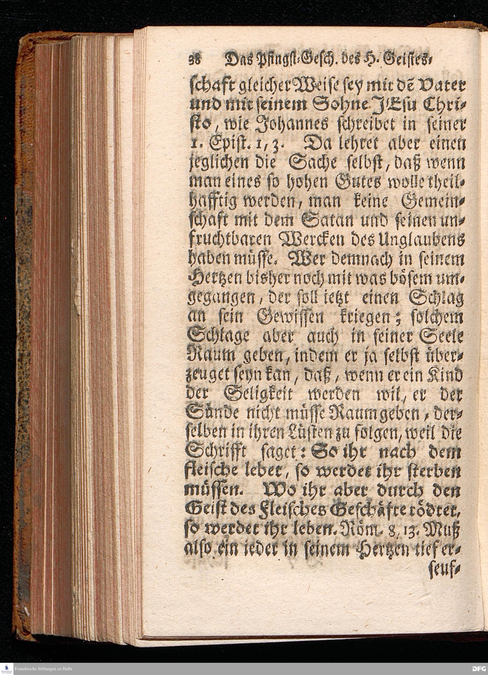 Das Eigentliche Pfingst=Geschäfte Des Heiligen Geistes, Welches ist JESUM CHristum bey denen Menschen zu verklären, Aus dem Evangelischen Text Joh.XIV, 23-31. Am I.Pfingst=Tage MDCCXIV. In der S.Georgen=Kirche zu Glaucha an Halle vorgestellet von August Hermann Francken, S.Theol.Pr.Ord.Past.Vlr.& Sch. Andere Auflage. HALLE, in Verlegung des Wäysenhauses. 1724.