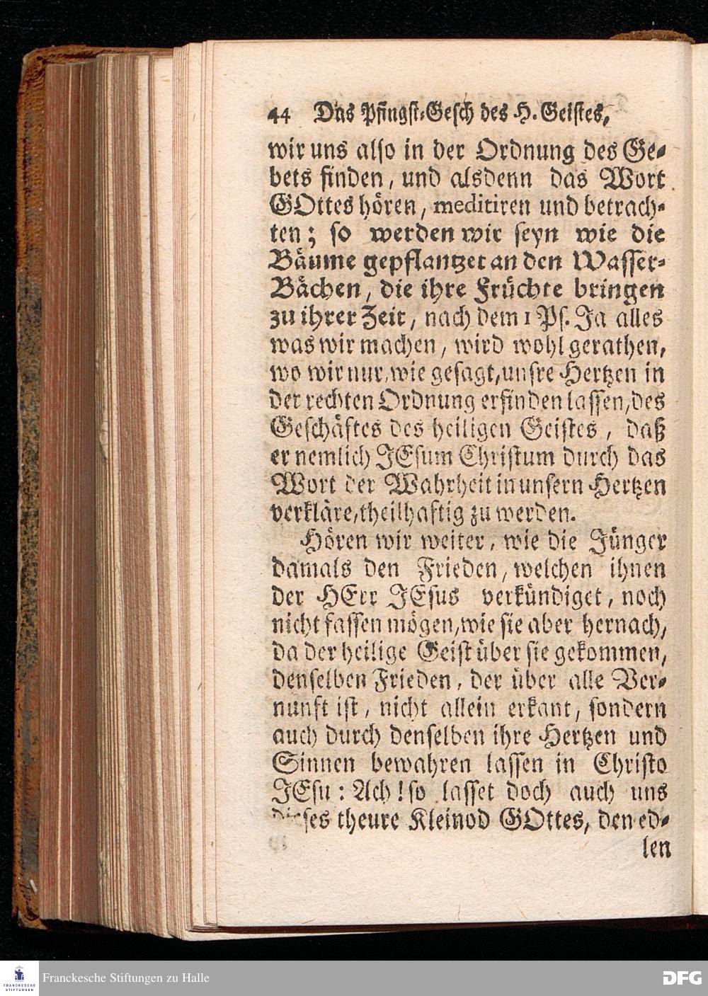Das Eigentliche Pfingst=Geschäfte Des Heiligen Geistes, Welches ist JESUM CHristum bey denen Menschen zu verklären, Aus dem Evangelischen Text Joh.XIV, 23-31. Am I.Pfingst=Tage MDCCXIV. In der S.Georgen=Kirche zu Glaucha an Halle vorgestellet von August Hermann Francken, S.Theol.Pr.Ord.Past.Vlr.& Sch. Andere Auflage. HALLE, in Verlegung des Wäysenhauses. 1724.