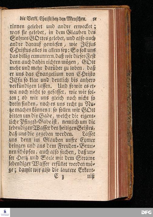 Das Eigentliche Pfingst=Geschäfte Des Heiligen Geistes, Welches ist JESUM CHristum bey denen Menschen zu verklären, Aus dem Evangelischen Text Joh.XIV, 23-31. Am I.Pfingst=Tage MDCCXIV. In der S.Georgen=Kirche zu Glaucha an Halle vorgestellet von August Hermann Francken, S.Theol.Pr.Ord.Past.Vlr.& Sch. Andere Auflage. HALLE, in Verlegung des Wäysenhauses. 1724.