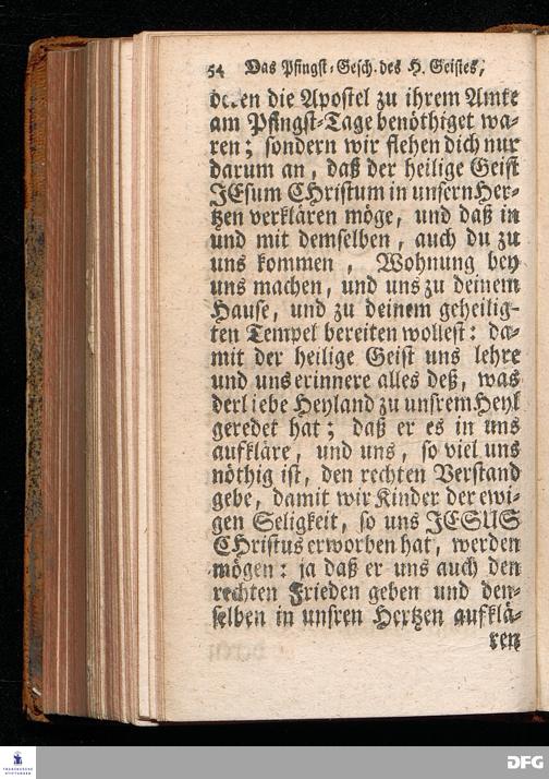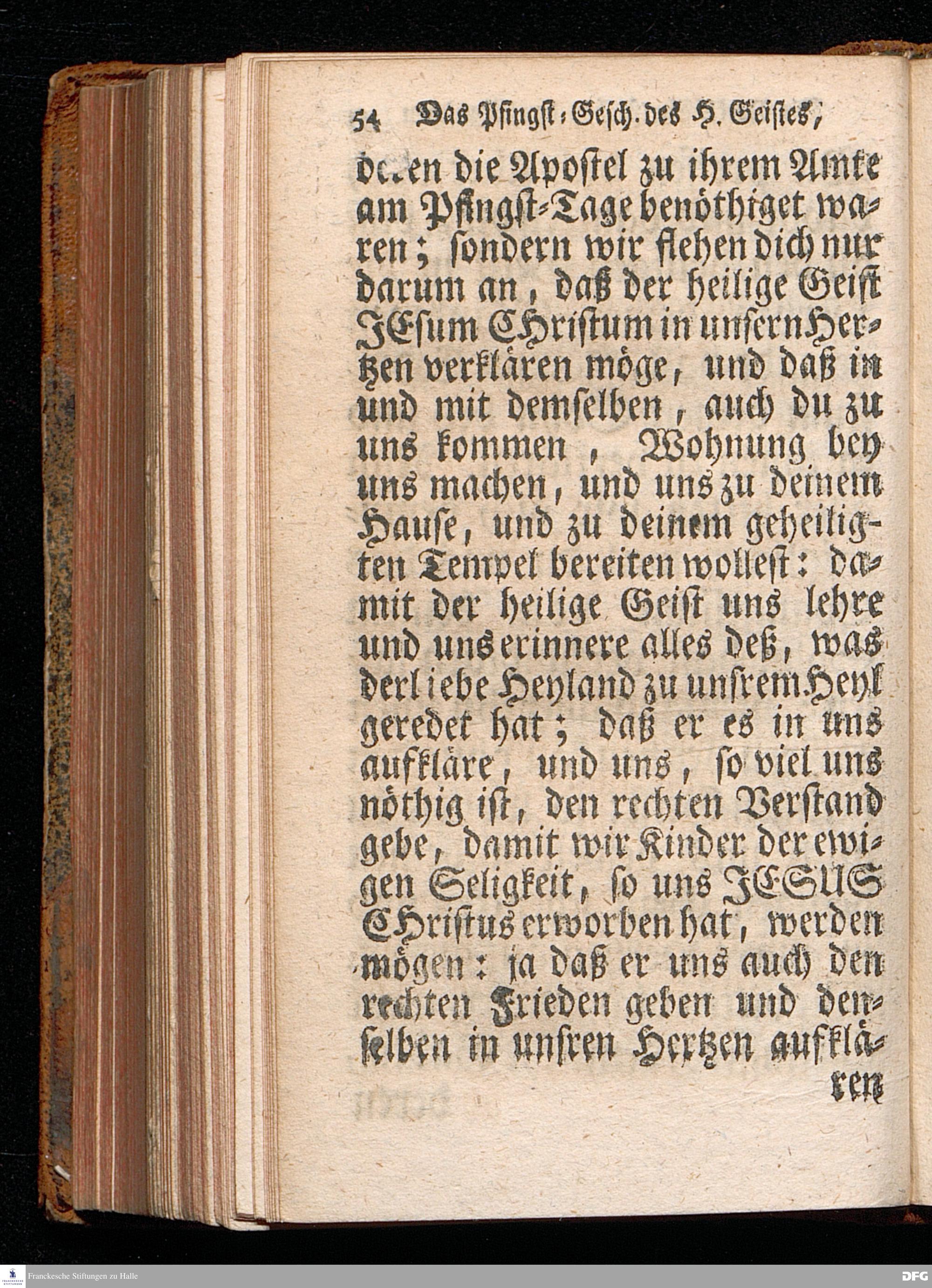 Das Eigentliche Pfingst=Geschäfte Des Heiligen Geistes, Welches ist JESUM CHristum bey denen Menschen zu verklären, Aus dem Evangelischen Text Joh.XIV, 23-31. Am I.Pfingst=Tage MDCCXIV. In der S.Georgen=Kirche zu Glaucha an Halle vorgestellet von August Hermann Francken, S.Theol.Pr.Ord.Past.Vlr.& Sch. Andere Auflage. HALLE, in Verlegung des Wäysenhauses. 1724.