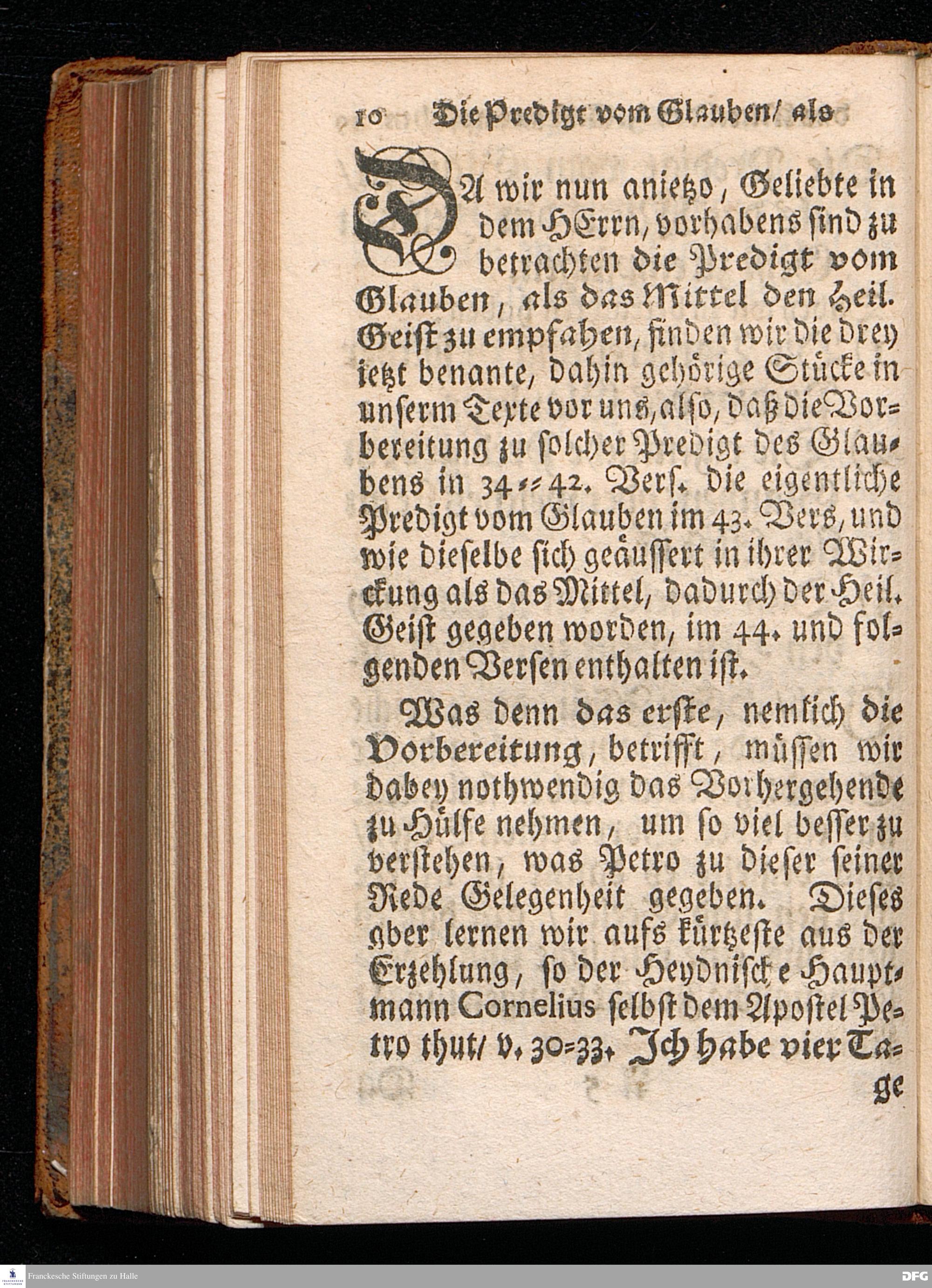 Die Predigt Vom Glauben, Als Das Mittel den Heil. Geist zu empfahen / Aus der Apost.Gesch.c.10 / 34=48. Am Andern Pfingst=Feyer=Tage In der Schul=Kirche zu Halle vorgestellet Von August Hermann Francken / S.Theol.Prof.& Past.Vlr.Gym.Schol. Andere Auflage, HALLE, Zu finden im Wäysen=Hause. MDCCXXIV.