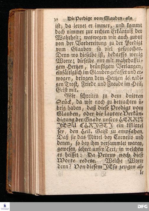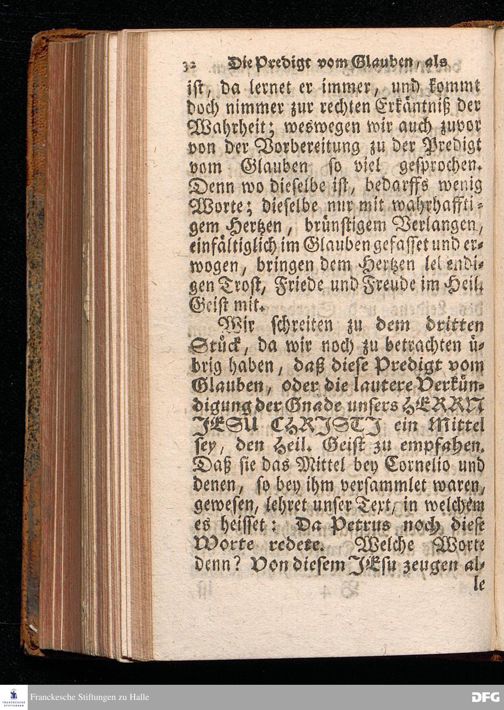 Die Predigt Vom Glauben, Als Das Mittel den Heil. Geist zu empfahen / Aus der Apost.Gesch.c.10 / 34=48. Am Andern Pfingst=Feyer=Tage In der Schul=Kirche zu Halle vorgestellet Von August Hermann Francken / S.Theol.Prof.& Past.Vlr.Gym.Schol. Andere Auflage, HALLE, Zu finden im Wäysen=Hause. MDCCXXIV.