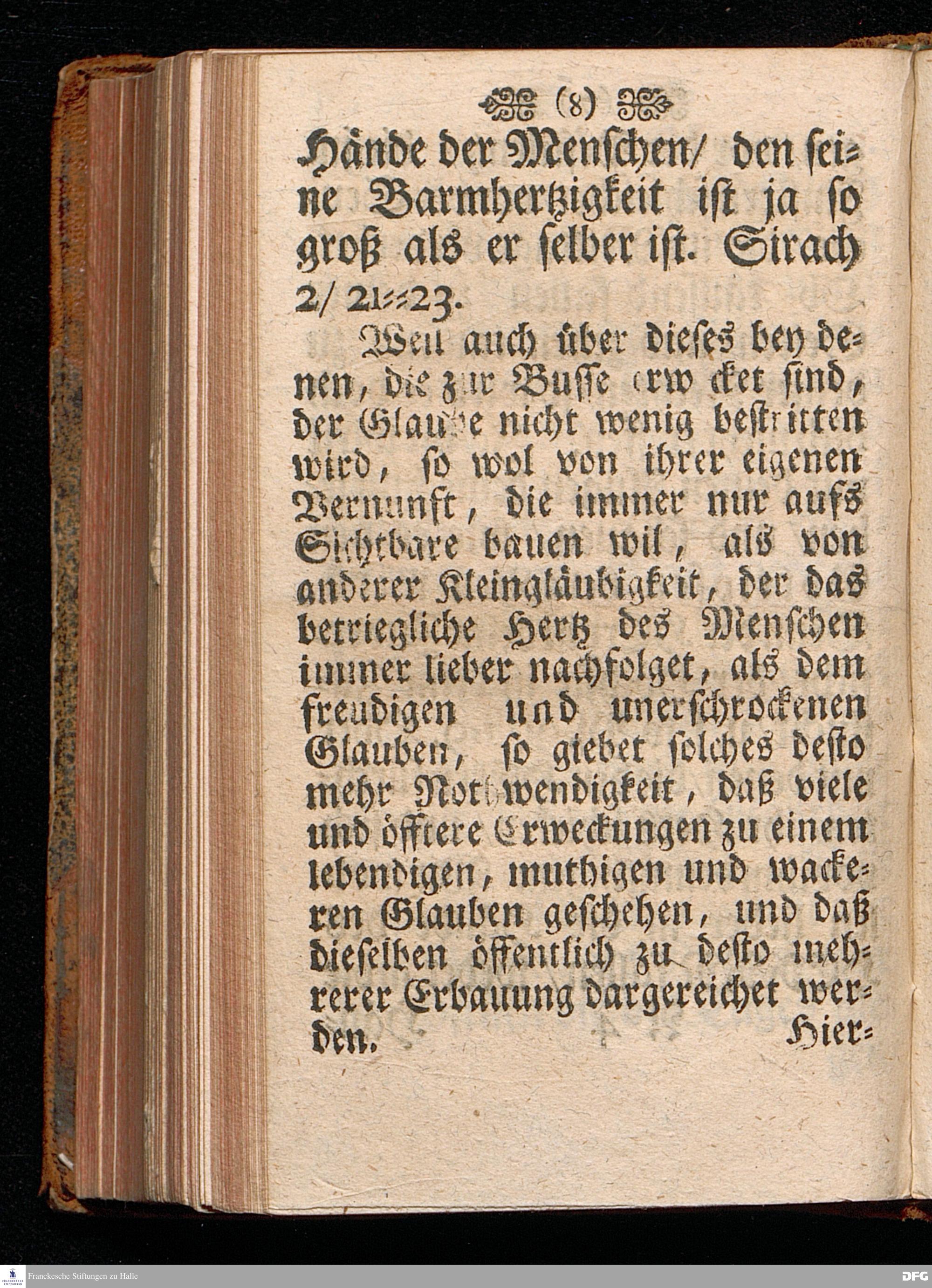 Reitzung zum Völligen Glauben Durch Vorstellung der Herrlichkeit JESU CHRISTI / Aus Der Historie von der Schiffarth CHristi / Matth.VIII, 23---27. In einem öffentlichen Vortrage Im Waysen=Hause zu Glaucha an Halle ertheilet / Und darauf zum Druck gegeben von August Hermann Francken / S.Theol.Prof.Ord.und Past.zu St.Ulrich und des Gymnasii Scholarcha. HALLE, in Verlegung des Wäysen=Hauses, 1715.