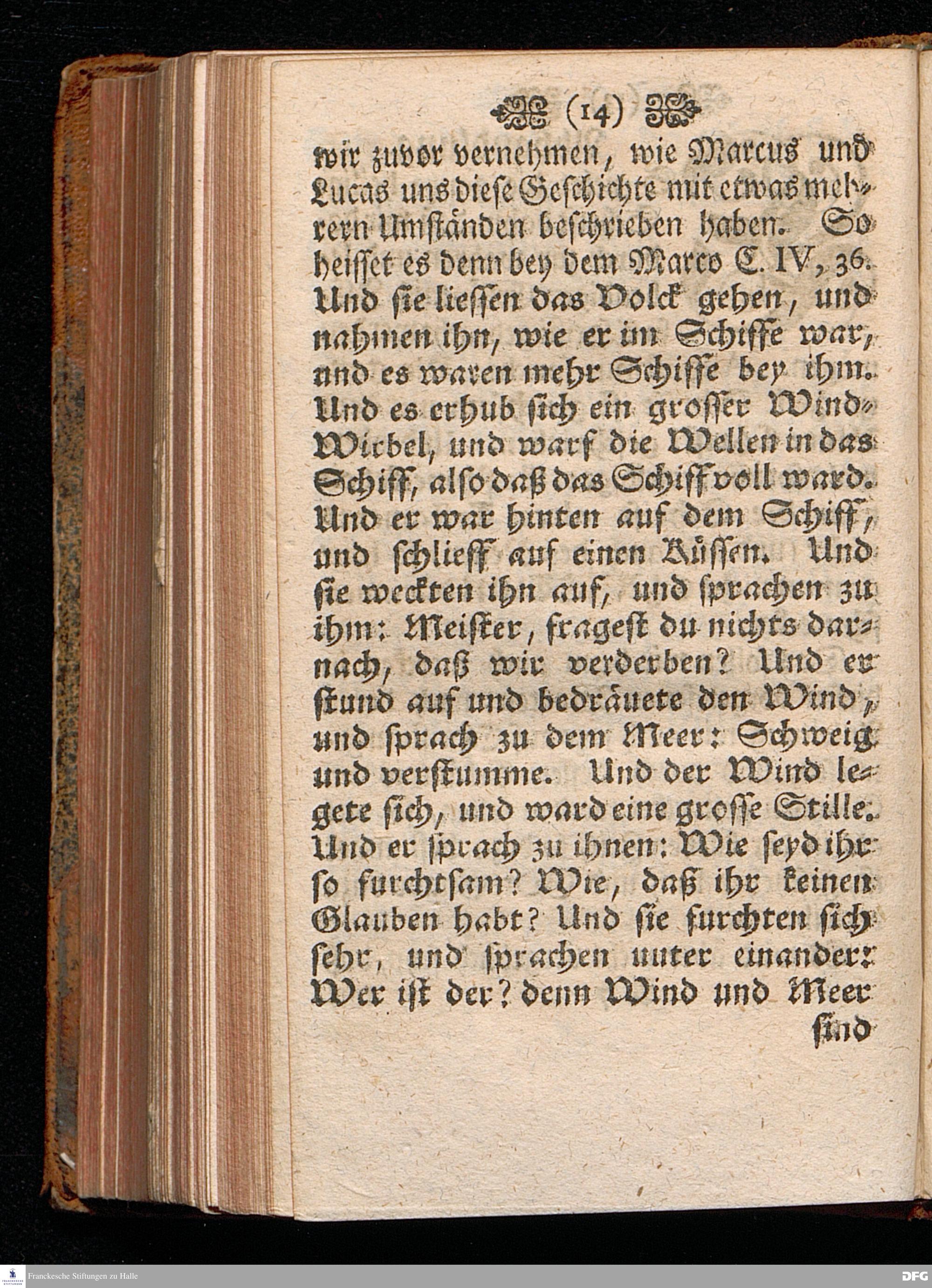 Reitzung zum Völligen Glauben Durch Vorstellung der Herrlichkeit JESU CHRISTI / Aus Der Historie von der Schiffarth CHristi / Matth.VIII, 23---27. In einem öffentlichen Vortrage Im Waysen=Hause zu Glaucha an Halle ertheilet / Und darauf zum Druck gegeben von August Hermann Francken / S.Theol.Prof.Ord.und Past.zu St.Ulrich und des Gymnasii Scholarcha. HALLE, in Verlegung des Wäysen=Hauses, 1715.