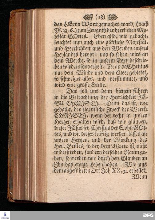 Reitzung zum Völligen Glauben Durch Vorstellung der Herrlichkeit JESU CHRISTI / Aus Der Historie von der Schiffarth CHristi / Matth.VIII, 23---27. In einem öffentlichen Vortrage Im Waysen=Hause zu Glaucha an Halle ertheilet / Und darauf zum Druck gegeben von August Hermann Francken / S.Theol.Prof.Ord.und Past.zu St.Ulrich und des Gymnasii Scholarcha. HALLE, in Verlegung des Wäysen=Hauses, 1715.
