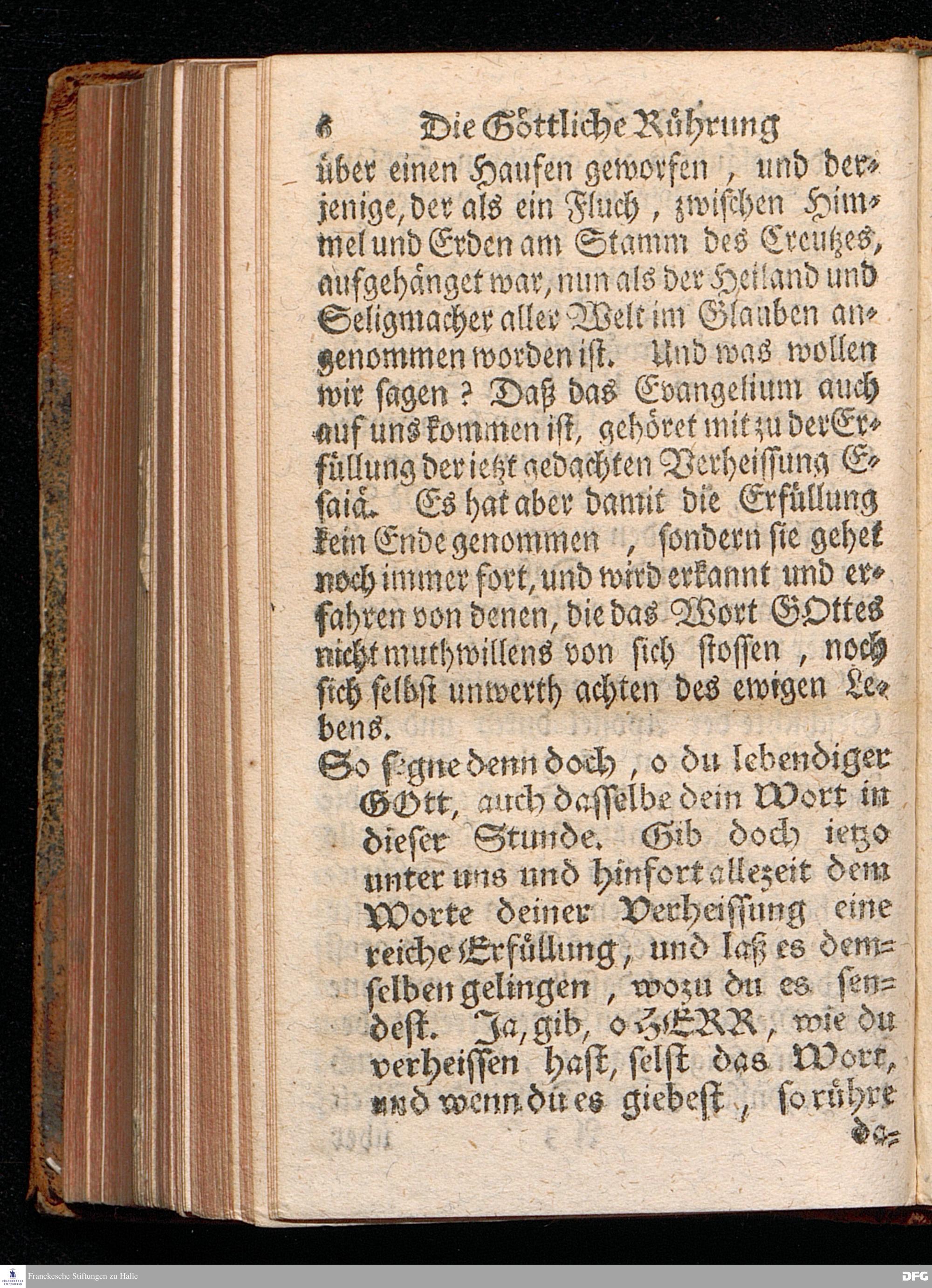 Die Göttliche Rührung des Hertzens, Aus der Apostel=Geschicht[!] II, 37. Da Sie das höreten, gings ihnen durchs Hertz, und sprachen zu Petro und zu den andern Aposteln: Ihr Männer, lieben Brüder, was sollen wir thun? Am Buß=Tage den 10.Jun. 1716. In der St.Ulrichs=Kirche in Halle, vorgestellet von August Hermann Francken, S.Th.P.Ord.& Past. Vlr.und des Gymnasii Schol. Der Jugend in den Schulen des Wäysenhauses nach gehaltenem Examine den 15.Augusti 1716 ausgetheilet. Dritte Auflage. HALLE, In Verlegung des Wäysenhauses. 1732.