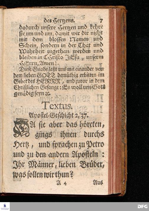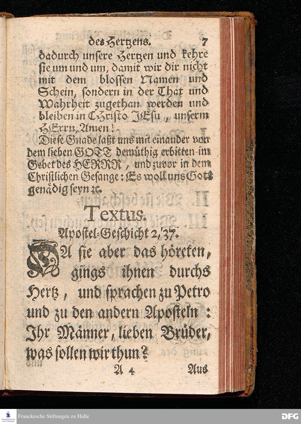 Die Göttliche Rührung des Hertzens, Aus der Apostel=Geschicht[!] II, 37. Da Sie das höreten, gings ihnen durchs Hertz, und sprachen zu Petro und zu den andern Aposteln: Ihr Männer, lieben Brüder, was sollen wir thun? Am Buß=Tage den 10.Jun. 1716. In der St.Ulrichs=Kirche in Halle, vorgestellet von August Hermann Francken, S.Th.P.Ord.& Past. Vlr.und des Gymnasii Schol. Der Jugend in den Schulen des Wäysenhauses nach gehaltenem Examine den 15.Augusti 1716 ausgetheilet. Dritte Auflage. HALLE, In Verlegung des Wäysenhauses. 1732.