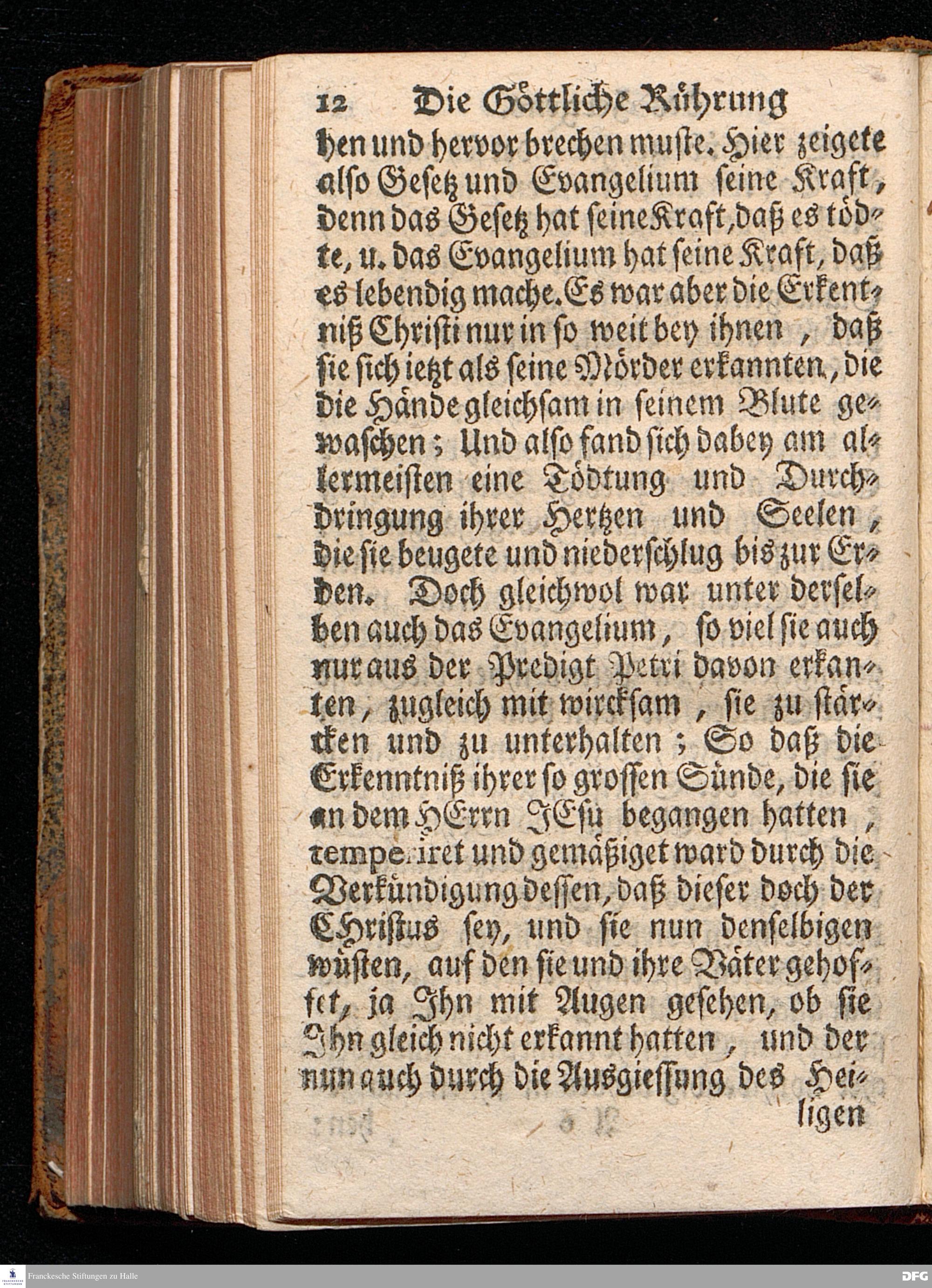Die Göttliche Rührung des Hertzens, Aus der Apostel=Geschicht[!] II, 37. Da Sie das höreten, gings ihnen durchs Hertz, und sprachen zu Petro und zu den andern Aposteln: Ihr Männer, lieben Brüder, was sollen wir thun? Am Buß=Tage den 10.Jun. 1716. In der St.Ulrichs=Kirche in Halle, vorgestellet von August Hermann Francken, S.Th.P.Ord.& Past. Vlr.und des Gymnasii Schol. Der Jugend in den Schulen des Wäysenhauses nach gehaltenem Examine den 15.Augusti 1716 ausgetheilet. Dritte Auflage. HALLE, In Verlegung des Wäysenhauses. 1732.