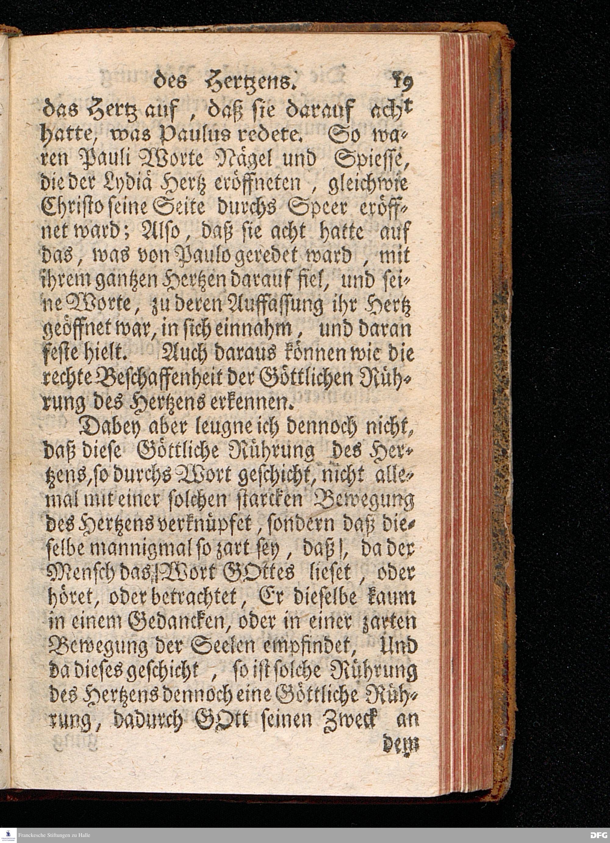 Die Göttliche Rührung des Hertzens, Aus der Apostel=Geschicht[!] II, 37. Da Sie das höreten, gings ihnen durchs Hertz, und sprachen zu Petro und zu den andern Aposteln: Ihr Männer, lieben Brüder, was sollen wir thun? Am Buß=Tage den 10.Jun. 1716. In der St.Ulrichs=Kirche in Halle, vorgestellet von August Hermann Francken, S.Th.P.Ord.& Past. Vlr.und des Gymnasii Schol. Der Jugend in den Schulen des Wäysenhauses nach gehaltenem Examine den 15.Augusti 1716 ausgetheilet. Dritte Auflage. HALLE, In Verlegung des Wäysenhauses. 1732.