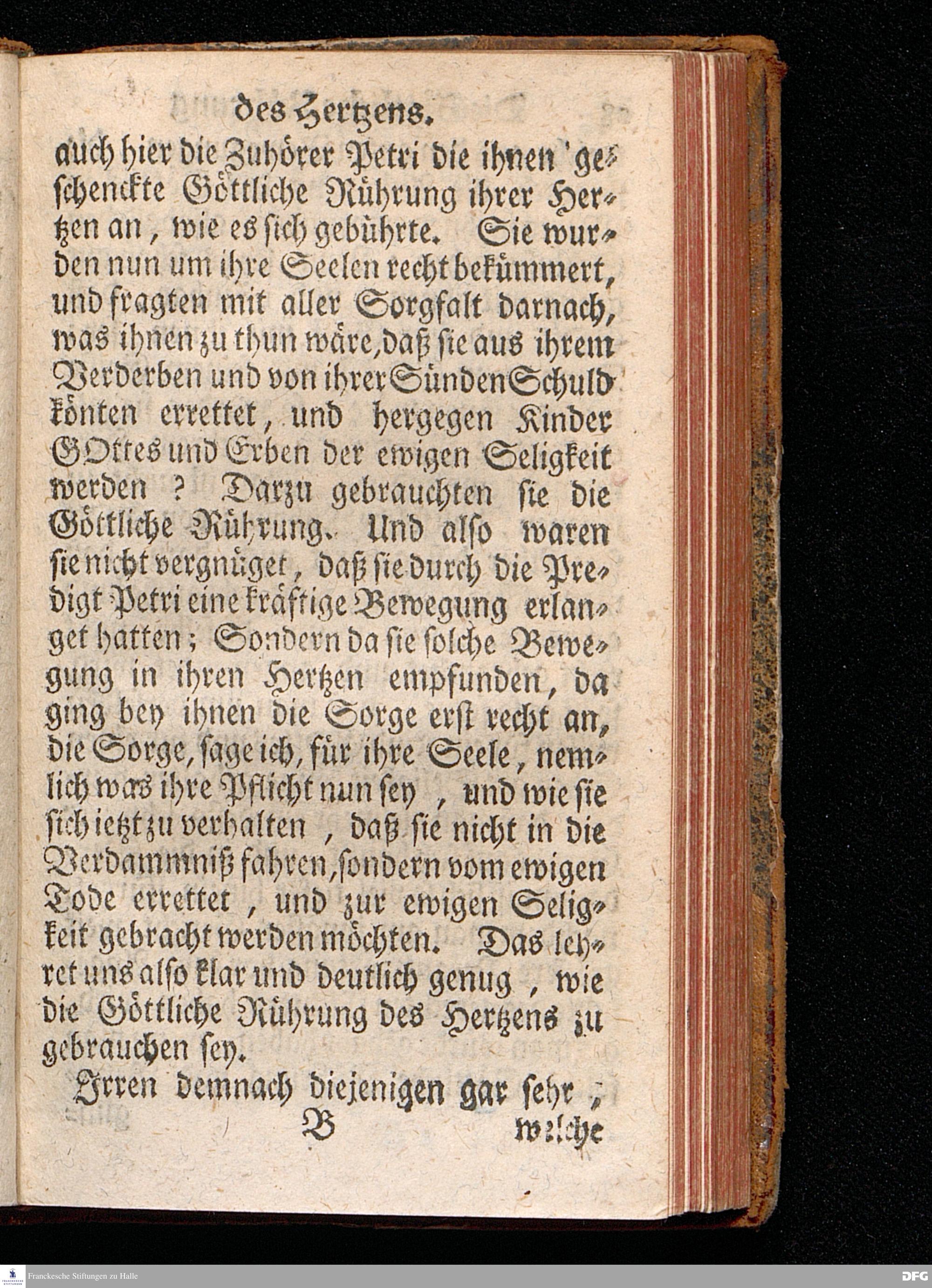 Die Göttliche Rührung des Hertzens, Aus der Apostel=Geschicht[!] II, 37. Da Sie das höreten, gings ihnen durchs Hertz, und sprachen zu Petro und zu den andern Aposteln: Ihr Männer, lieben Brüder, was sollen wir thun? Am Buß=Tage den 10.Jun. 1716. In der St.Ulrichs=Kirche in Halle, vorgestellet von August Hermann Francken, S.Th.P.Ord.& Past. Vlr.und des Gymnasii Schol. Der Jugend in den Schulen des Wäysenhauses nach gehaltenem Examine den 15.Augusti 1716 ausgetheilet. Dritte Auflage. HALLE, In Verlegung des Wäysenhauses. 1732.