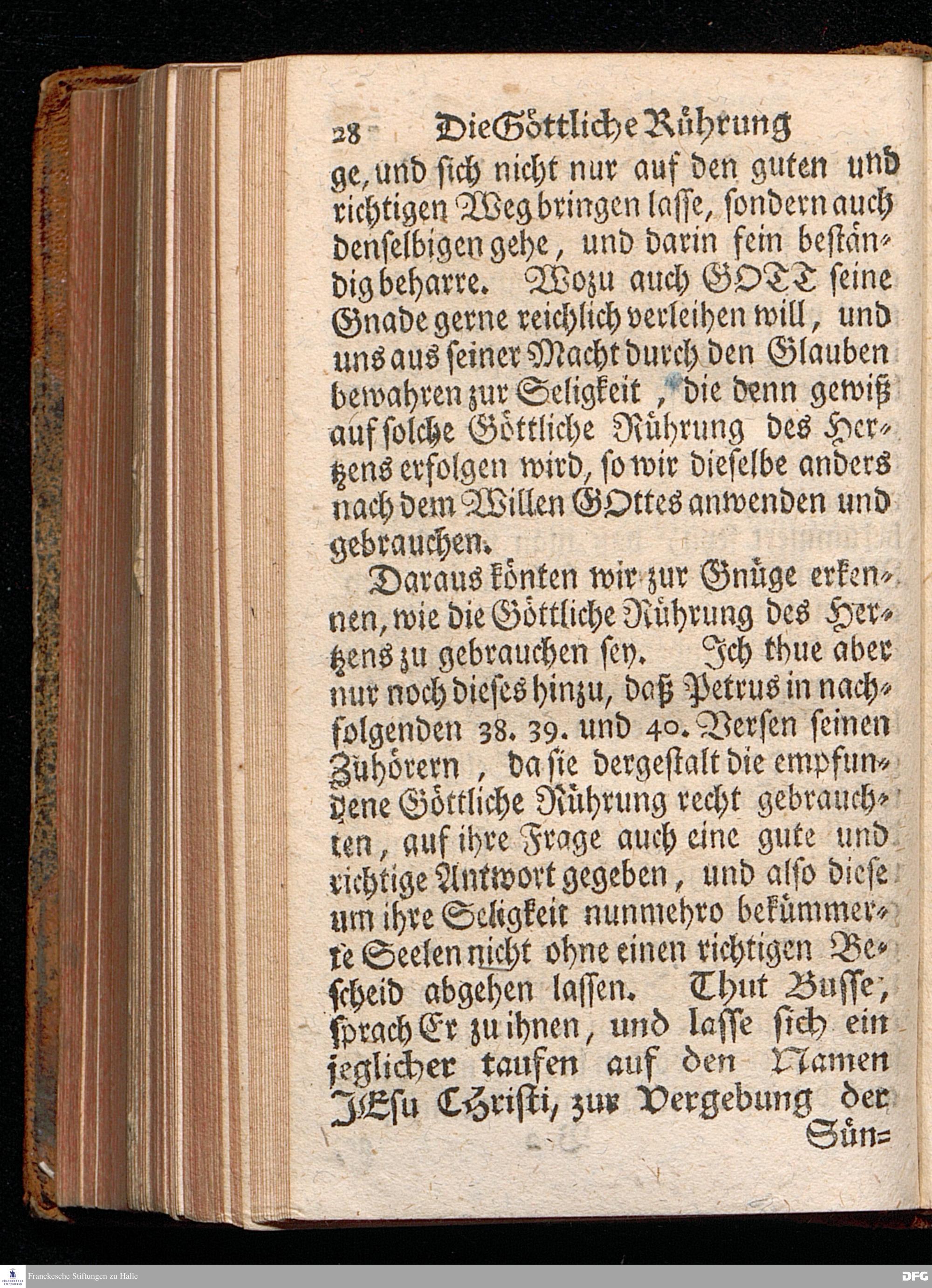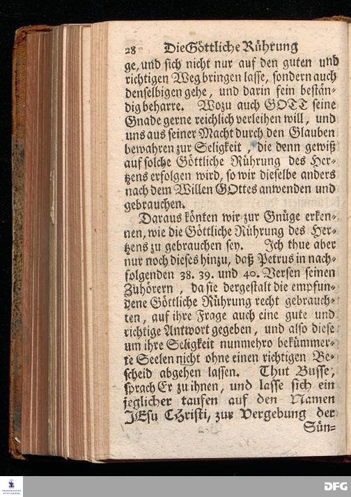 Die Göttliche Rührung des Hertzens, Aus der Apostel=Geschicht[!] II, 37. Da Sie das höreten, gings ihnen durchs Hertz, und sprachen zu Petro und zu den andern Aposteln: Ihr Männer, lieben Brüder, was sollen wir thun? Am Buß=Tage den 10.Jun. 1716. In der St.Ulrichs=Kirche in Halle, vorgestellet von August Hermann Francken, S.Th.P.Ord.& Past. Vlr.und des Gymnasii Schol. Der Jugend in den Schulen des Wäysenhauses nach gehaltenem Examine den 15.Augusti 1716 ausgetheilet. Dritte Auflage. HALLE, In Verlegung des Wäysenhauses. 1732.