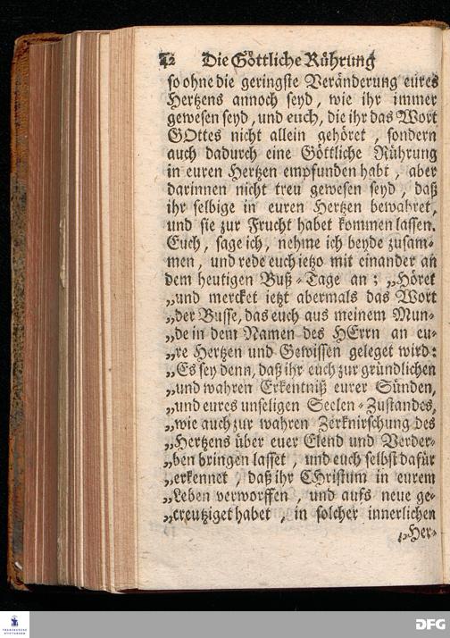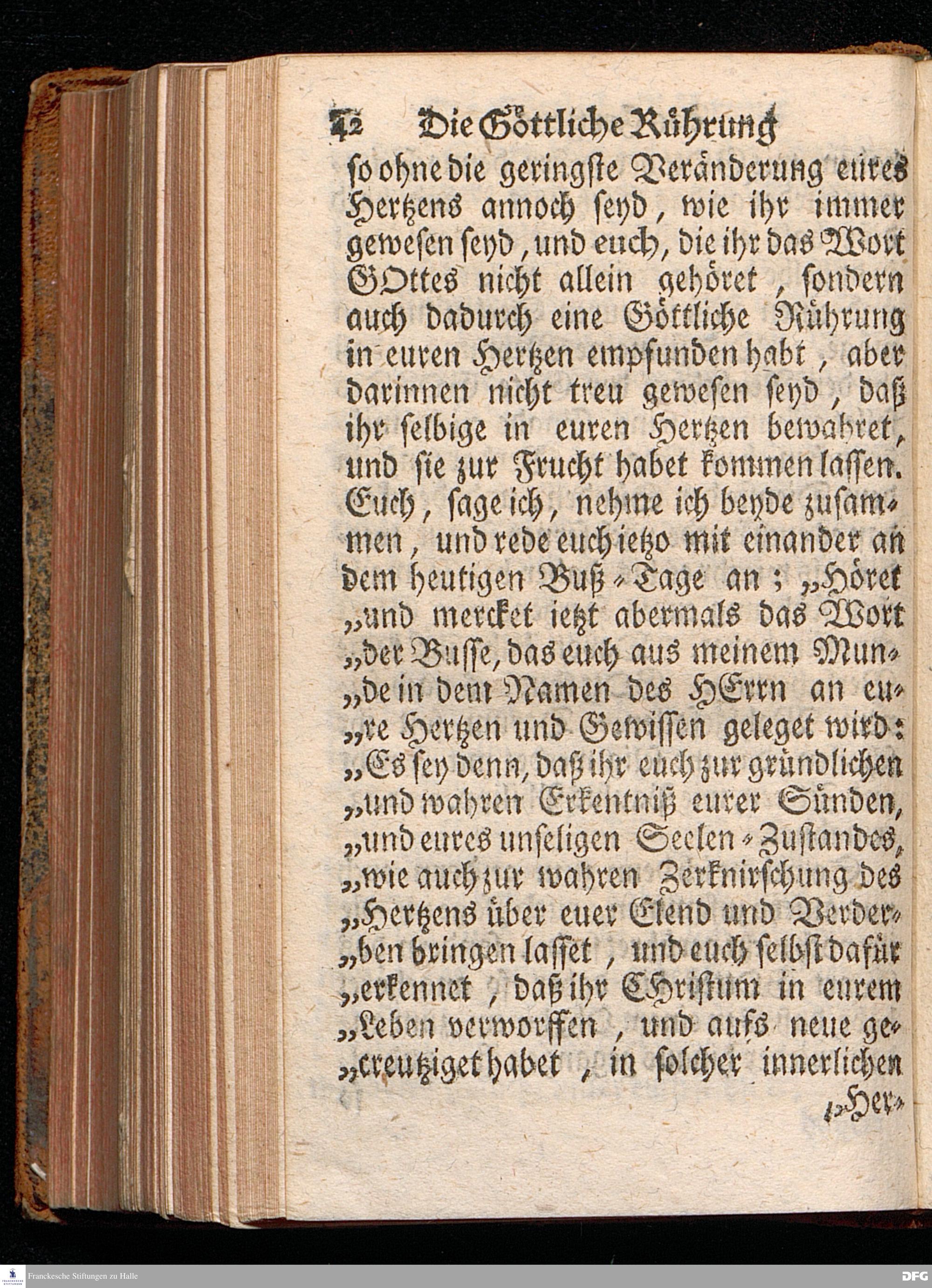 Die Göttliche Rührung des Hertzens, Aus der Apostel=Geschicht[!] II, 37. Da Sie das höreten, gings ihnen durchs Hertz, und sprachen zu Petro und zu den andern Aposteln: Ihr Männer, lieben Brüder, was sollen wir thun? Am Buß=Tage den 10.Jun. 1716. In der St.Ulrichs=Kirche in Halle, vorgestellet von August Hermann Francken, S.Th.P.Ord.& Past. Vlr.und des Gymnasii Schol. Der Jugend in den Schulen des Wäysenhauses nach gehaltenem Examine den 15.Augusti 1716 ausgetheilet. Dritte Auflage. HALLE, In Verlegung des Wäysenhauses. 1732.