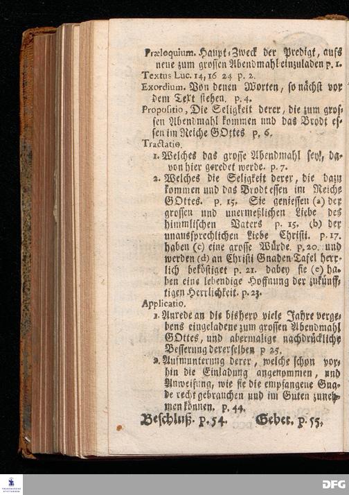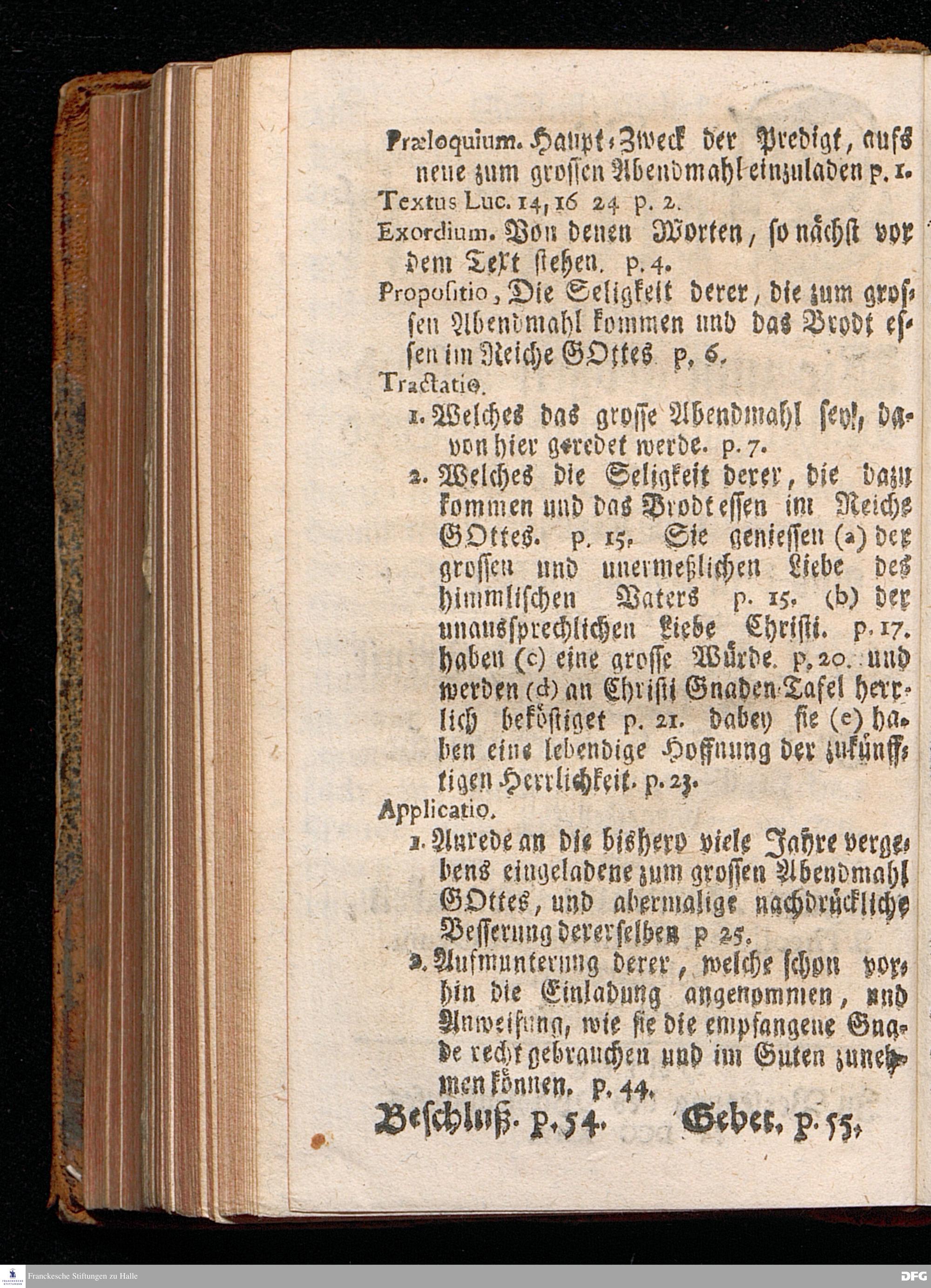 Die Seligkeit Derer, Die zum grossen Abend=Mahl kommen, und das Brod essen im Reiche GOttes, Aus dem Evangelischen Text Luc.XIV, 16-24. Am II.Sonntag nach Trinit. MDCCXIV. In der St.Georgen=Kirche zu Glaucha an Halle vorgestellet von August Hermann Francken, S.Theol.Prof.Past.Vlric.& Gymn.Scholarcha. Andere Auflage. HALLE, In Verlegung des Wäysenhauses. MDCCXXIV.