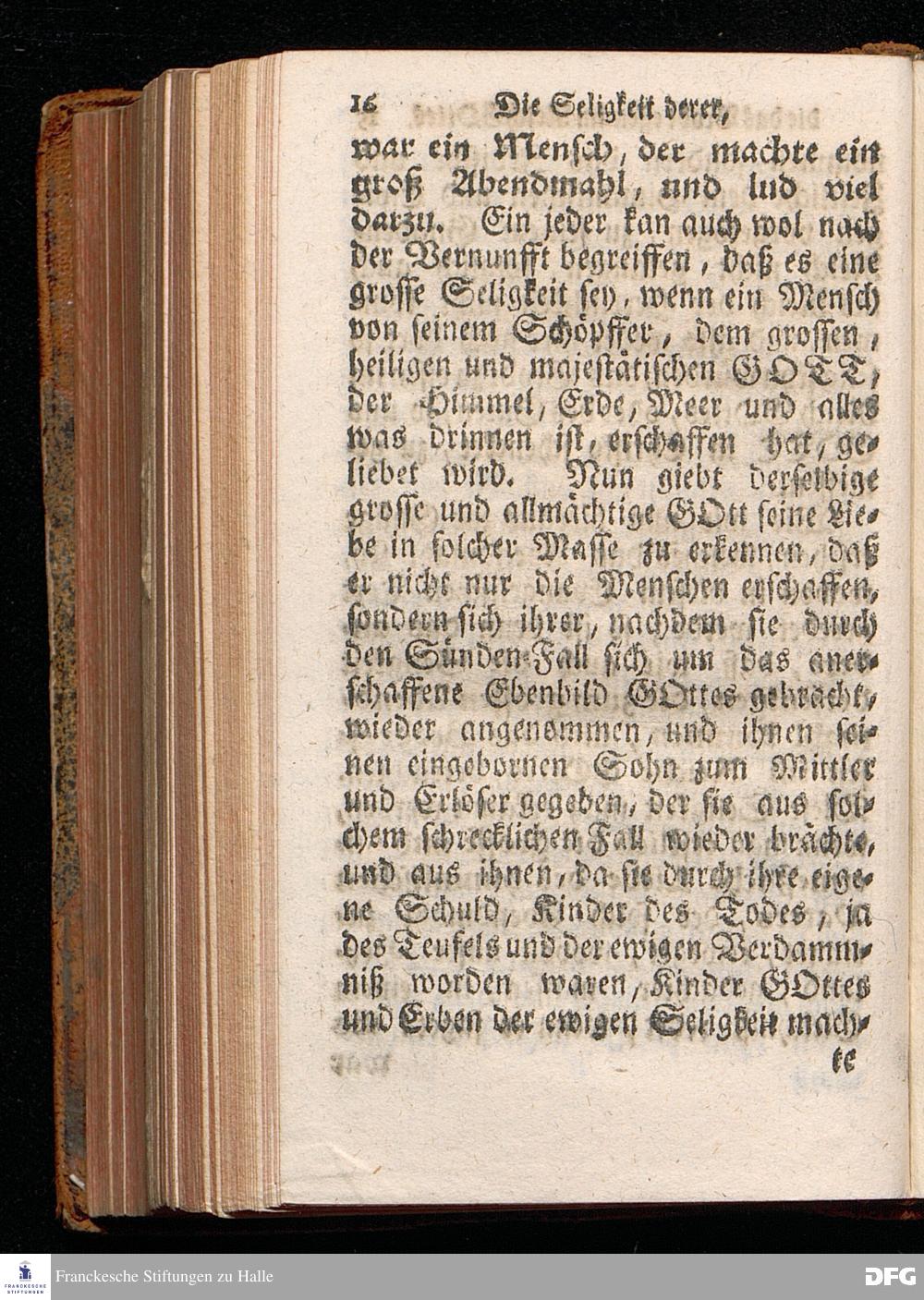 Die Seligkeit Derer, Die zum grossen Abend=Mahl kommen, und das Brod essen im Reiche GOttes, Aus dem Evangelischen Text Luc.XIV, 16-24. Am II.Sonntag nach Trinit. MDCCXIV. In der St.Georgen=Kirche zu Glaucha an Halle vorgestellet von August Hermann Francken, S.Theol.Prof.Past.Vlric.& Gymn.Scholarcha. Andere Auflage. HALLE, In Verlegung des Wäysenhauses. MDCCXXIV.