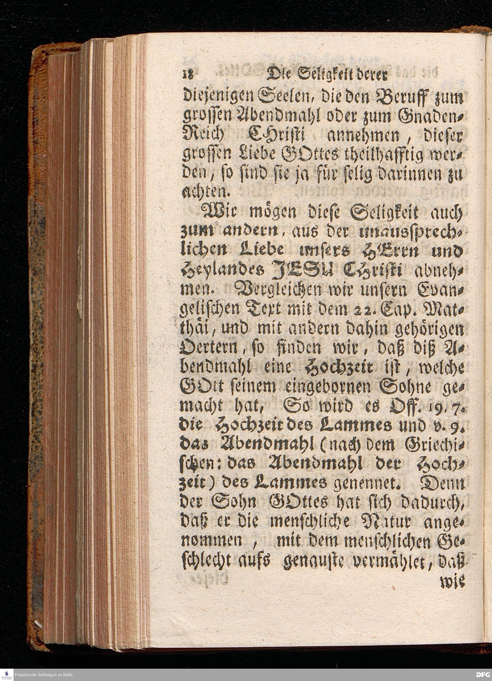 Die Seligkeit Derer, Die zum grossen Abend=Mahl kommen, und das Brod essen im Reiche GOttes, Aus dem Evangelischen Text Luc.XIV, 16-24. Am II.Sonntag nach Trinit. MDCCXIV. In der St.Georgen=Kirche zu Glaucha an Halle vorgestellet von August Hermann Francken, S.Theol.Prof.Past.Vlric.& Gymn.Scholarcha. Andere Auflage. HALLE, In Verlegung des Wäysenhauses. MDCCXXIV.