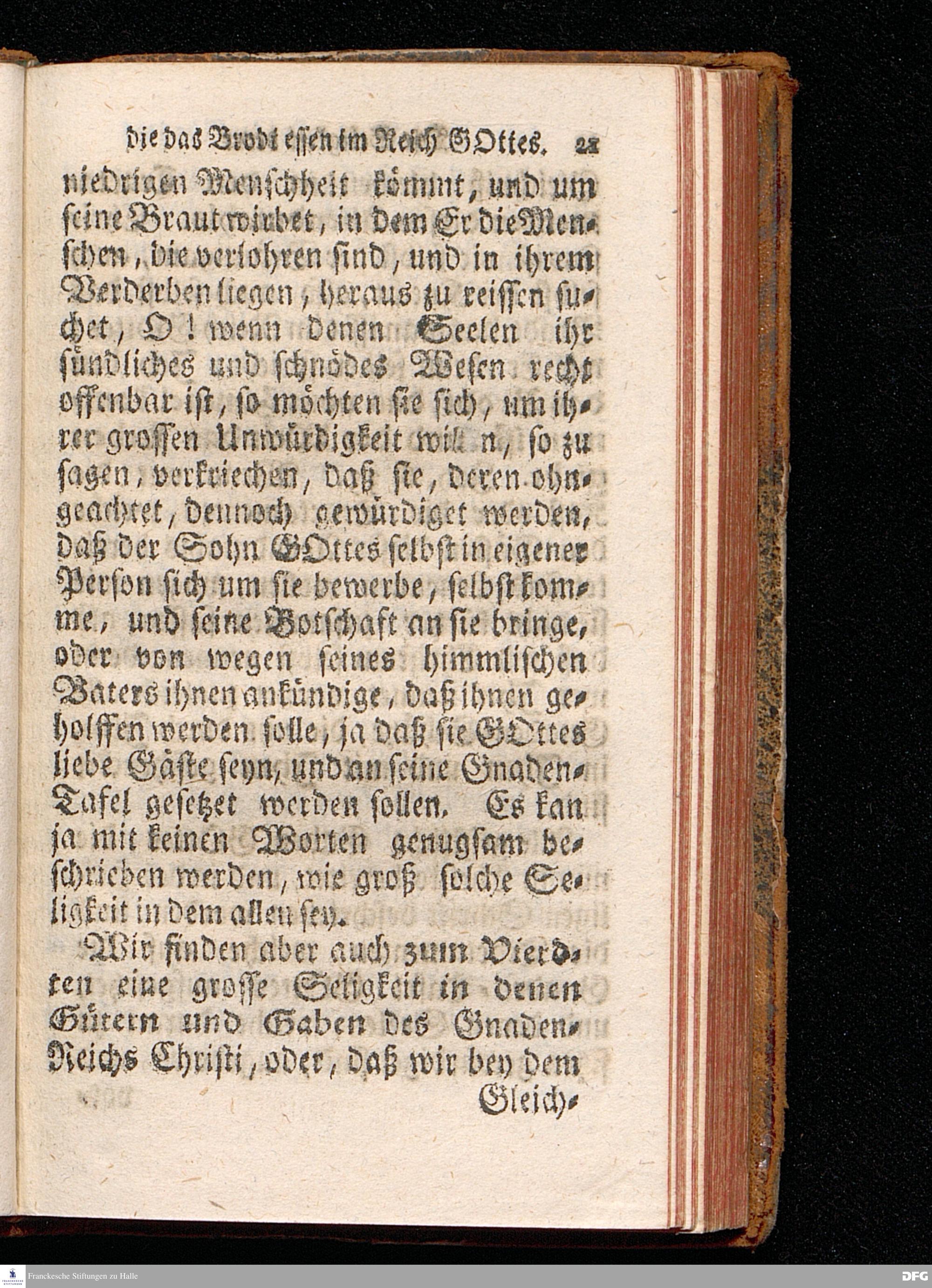 Die Seligkeit Derer, Die zum grossen Abend=Mahl kommen, und das Brod essen im Reiche GOttes, Aus dem Evangelischen Text Luc.XIV, 16-24. Am II.Sonntag nach Trinit. MDCCXIV. In der St.Georgen=Kirche zu Glaucha an Halle vorgestellet von August Hermann Francken, S.Theol.Prof.Past.Vlric.& Gymn.Scholarcha. Andere Auflage. HALLE, In Verlegung des Wäysenhauses. MDCCXXIV.