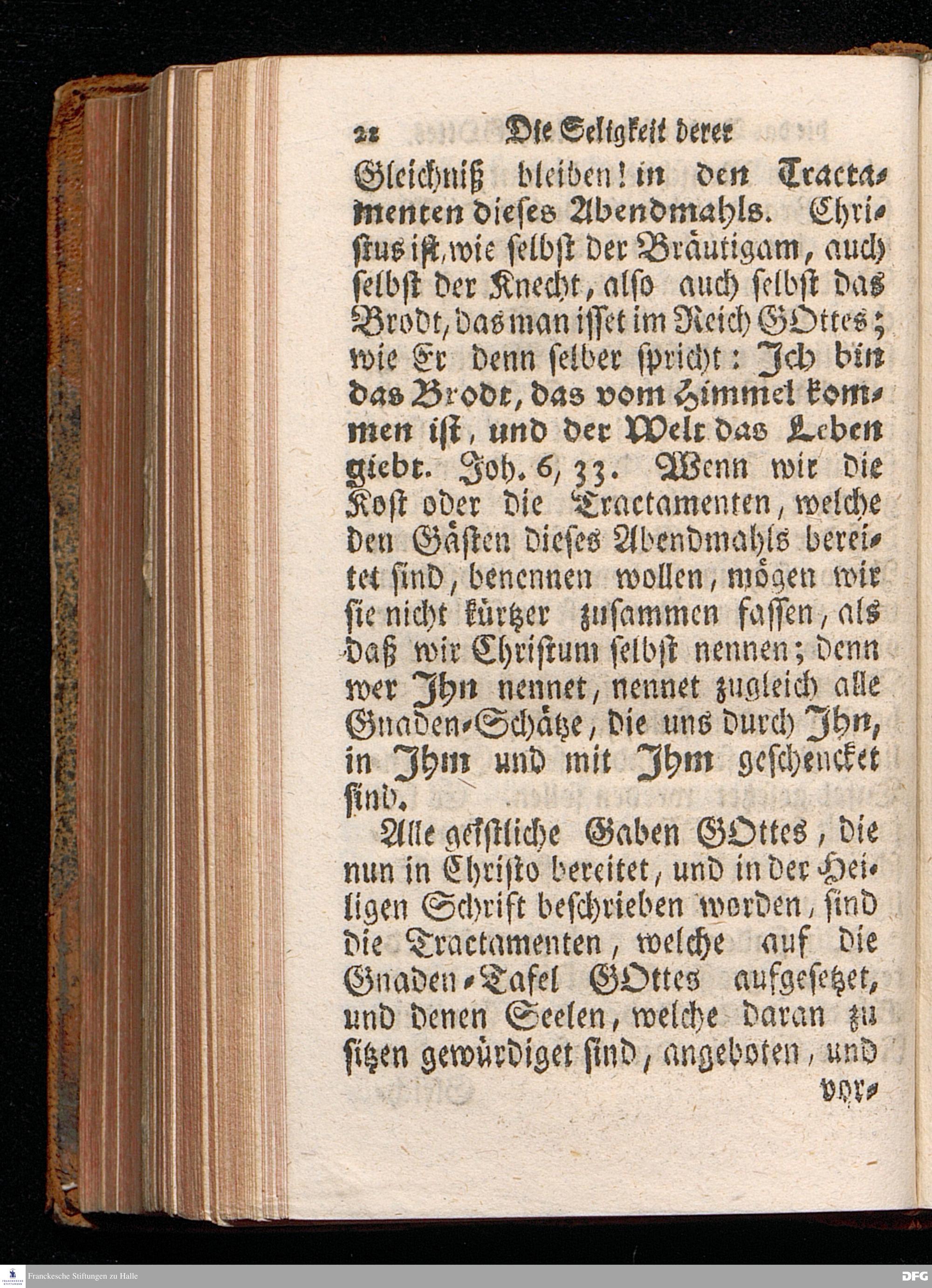 Die Seligkeit Derer, Die zum grossen Abend=Mahl kommen, und das Brod essen im Reiche GOttes, Aus dem Evangelischen Text Luc.XIV, 16-24. Am II.Sonntag nach Trinit. MDCCXIV. In der St.Georgen=Kirche zu Glaucha an Halle vorgestellet von August Hermann Francken, S.Theol.Prof.Past.Vlric.& Gymn.Scholarcha. Andere Auflage. HALLE, In Verlegung des Wäysenhauses. MDCCXXIV.
