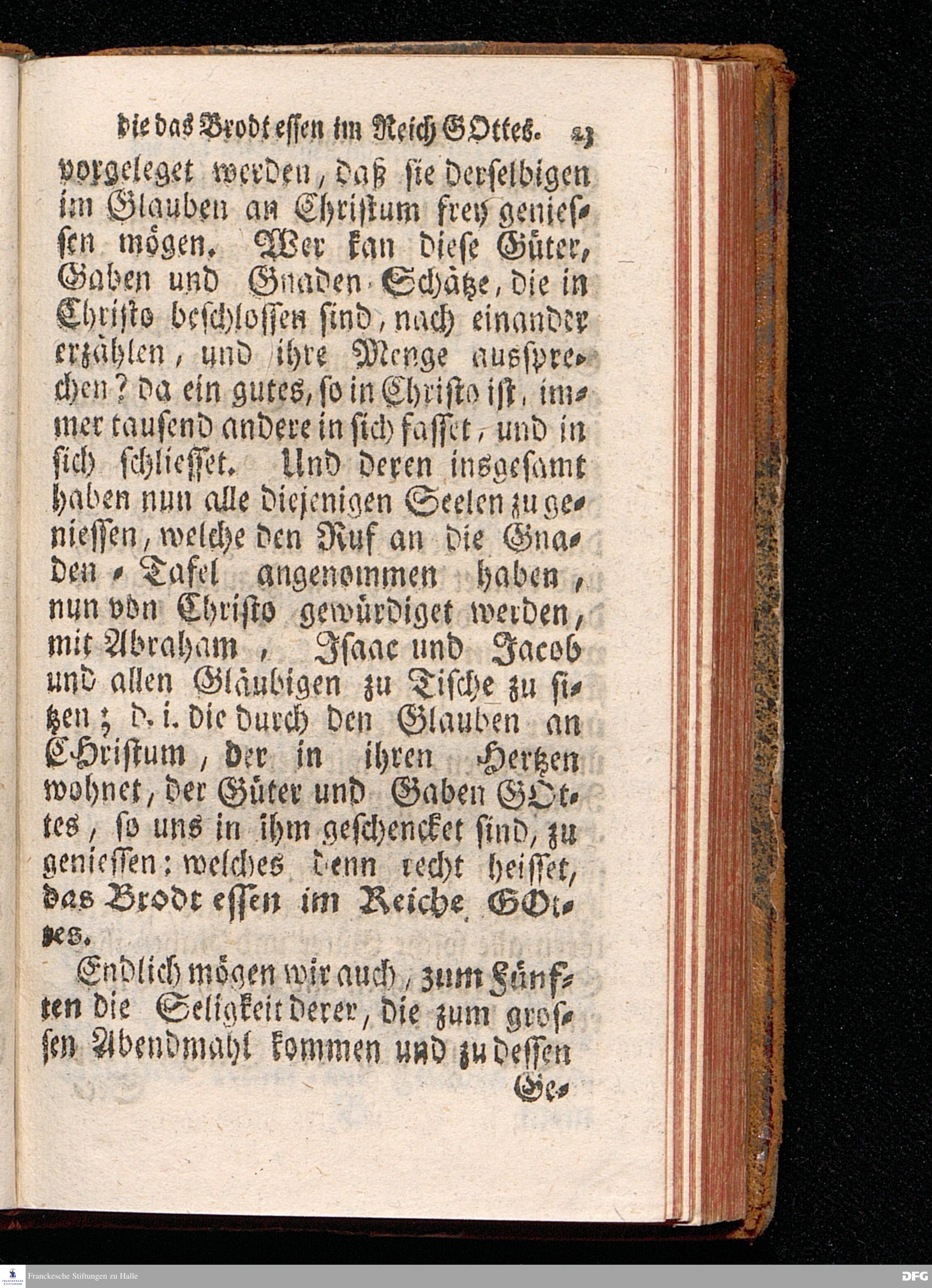 Die Seligkeit Derer, Die zum grossen Abend=Mahl kommen, und das Brod essen im Reiche GOttes, Aus dem Evangelischen Text Luc.XIV, 16-24. Am II.Sonntag nach Trinit. MDCCXIV. In der St.Georgen=Kirche zu Glaucha an Halle vorgestellet von August Hermann Francken, S.Theol.Prof.Past.Vlric.& Gymn.Scholarcha. Andere Auflage. HALLE, In Verlegung des Wäysenhauses. MDCCXXIV.