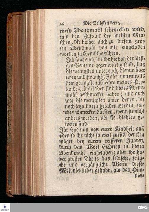 Die Seligkeit Derer, Die zum grossen Abend=Mahl kommen, und das Brod essen im Reiche GOttes, Aus dem Evangelischen Text Luc.XIV, 16-24. Am II.Sonntag nach Trinit. MDCCXIV. In der St.Georgen=Kirche zu Glaucha an Halle vorgestellet von August Hermann Francken, S.Theol.Prof.Past.Vlric.& Gymn.Scholarcha. Andere Auflage. HALLE, In Verlegung des Wäysenhauses. MDCCXXIV.