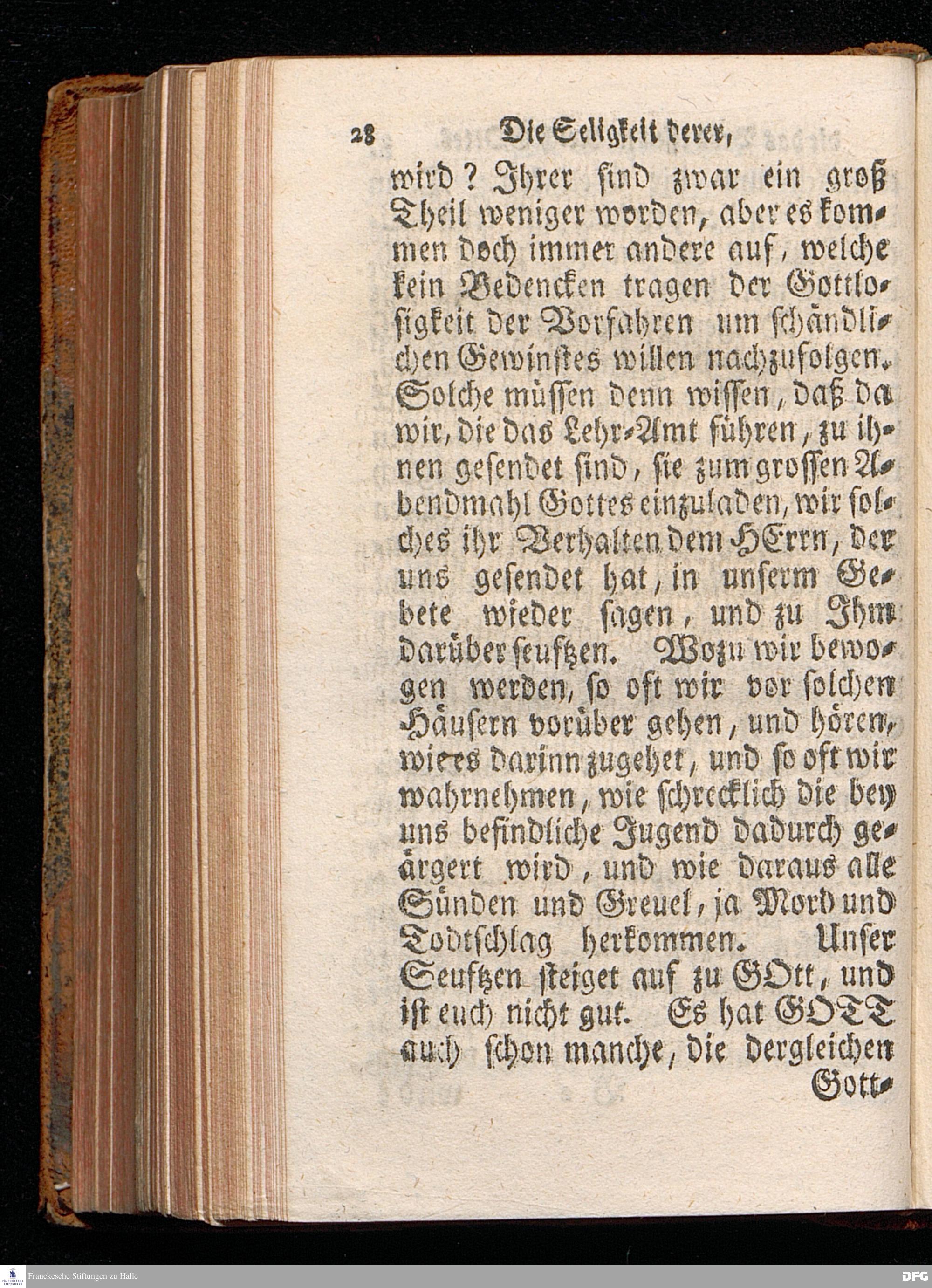 Die Seligkeit Derer, Die zum grossen Abend=Mahl kommen, und das Brod essen im Reiche GOttes, Aus dem Evangelischen Text Luc.XIV, 16-24. Am II.Sonntag nach Trinit. MDCCXIV. In der St.Georgen=Kirche zu Glaucha an Halle vorgestellet von August Hermann Francken, S.Theol.Prof.Past.Vlric.& Gymn.Scholarcha. Andere Auflage. HALLE, In Verlegung des Wäysenhauses. MDCCXXIV.