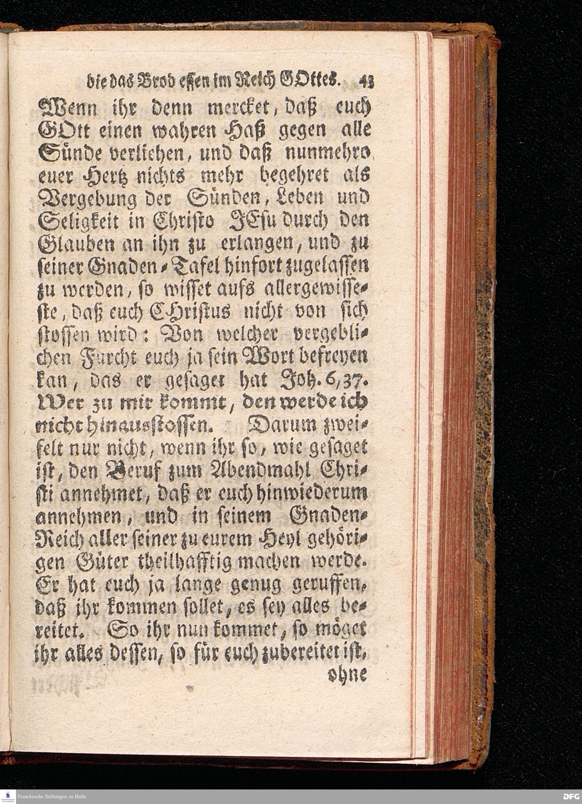 Die Seligkeit Derer, Die zum grossen Abend=Mahl kommen, und das Brod essen im Reiche GOttes, Aus dem Evangelischen Text Luc.XIV, 16-24. Am II.Sonntag nach Trinit. MDCCXIV. In der St.Georgen=Kirche zu Glaucha an Halle vorgestellet von August Hermann Francken, S.Theol.Prof.Past.Vlric.& Gymn.Scholarcha. Andere Auflage. HALLE, In Verlegung des Wäysenhauses. MDCCXXIV.