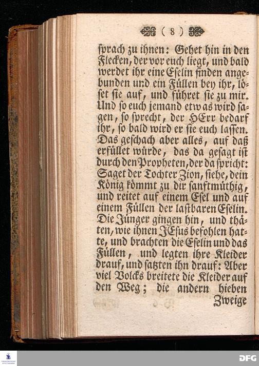 Spiegel der Aufnahme CHRISTI, In dem Exempel derer, die Ihn aufgenommen und nicht aufgenommen haben, Zur Nachfolge und Warnung, Am 1sten Advents=Sonntage A.1717. aus Matth.21, 1==9. In einer auf der Universität Tübingen liebreichst aufgetragenen, und in der Haupt=Kirche daselbst abgelegten Predigt vorgestellet Und auf Erfordern zum Druck gegeben von August Hermann Francken, S.Theol.Professore, Past. und Scholarcha zu Halle im Hertzogthum Magdeb. Vierte Auflage. In Verlegung des Wäysenhauses, 1744.