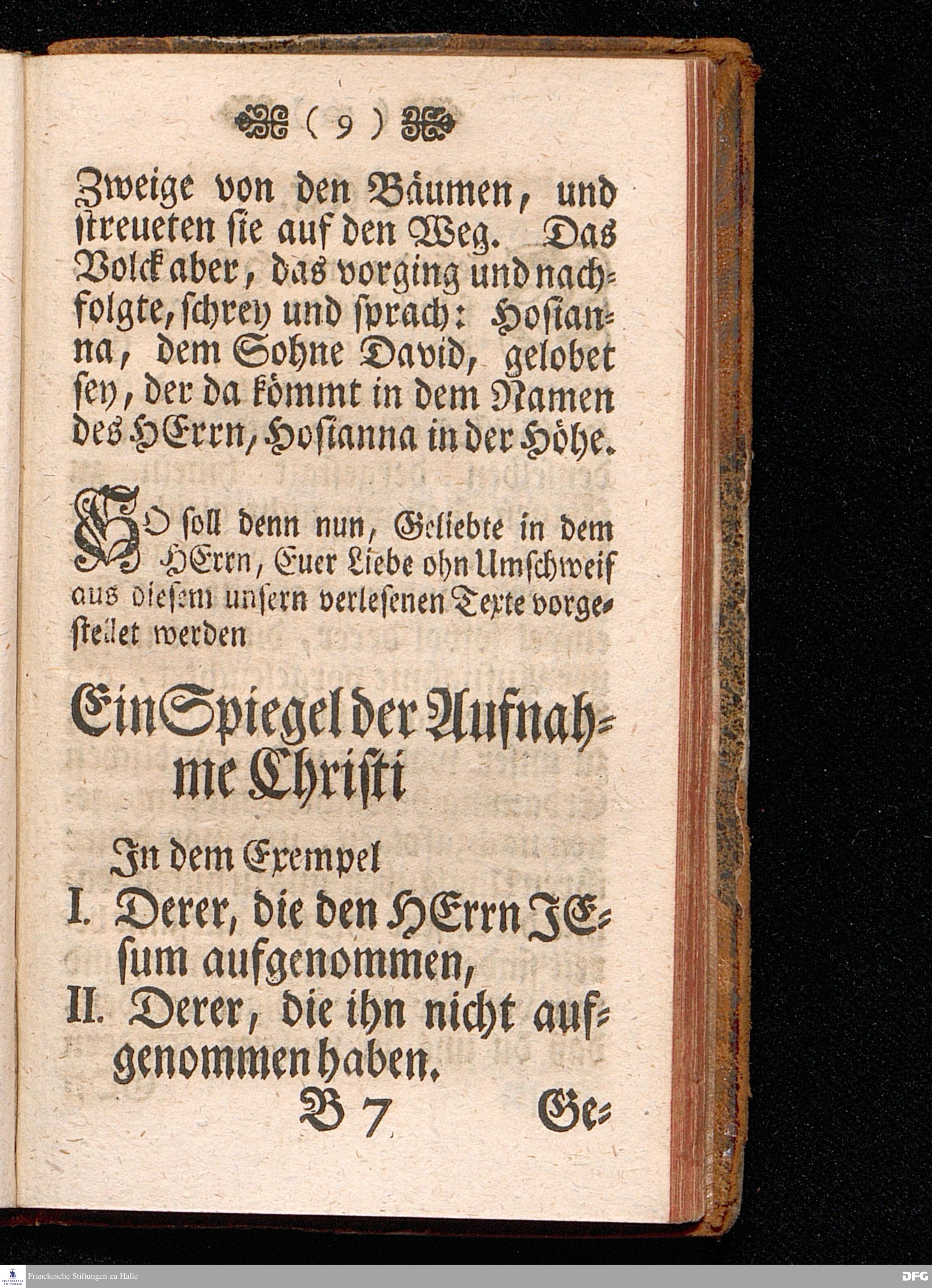 Spiegel der Aufnahme CHRISTI, In dem Exempel derer, die Ihn aufgenommen und nicht aufgenommen haben, Zur Nachfolge und Warnung, Am 1sten Advents=Sonntage A.1717. aus Matth.21, 1==9. In einer auf der Universität Tübingen liebreichst aufgetragenen, und in der Haupt=Kirche daselbst abgelegten Predigt vorgestellet Und auf Erfordern zum Druck gegeben von August Hermann Francken, S.Theol.Professore, Past. und Scholarcha zu Halle im Hertzogthum Magdeb. Vierte Auflage. In Verlegung des Wäysenhauses, 1744.
