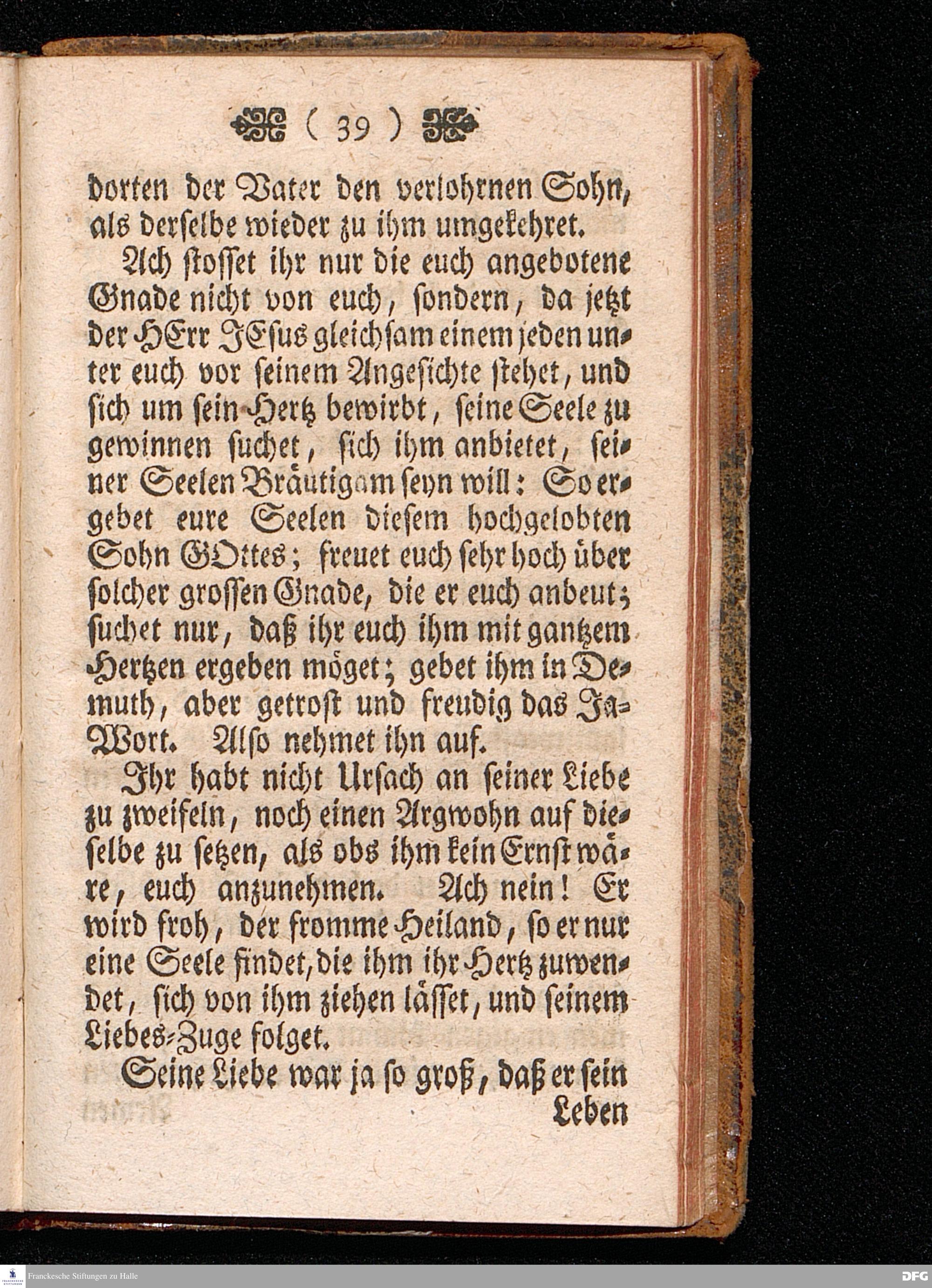 Spiegel der Aufnahme CHRISTI, In dem Exempel derer, die Ihn aufgenommen und nicht aufgenommen haben, Zur Nachfolge und Warnung, Am 1sten Advents=Sonntage A.1717. aus Matth.21, 1==9. In einer auf der Universität Tübingen liebreichst aufgetragenen, und in der Haupt=Kirche daselbst abgelegten Predigt vorgestellet Und auf Erfordern zum Druck gegeben von August Hermann Francken, S.Theol.Professore, Past. und Scholarcha zu Halle im Hertzogthum Magdeb. Vierte Auflage. In Verlegung des Wäysenhauses, 1744.