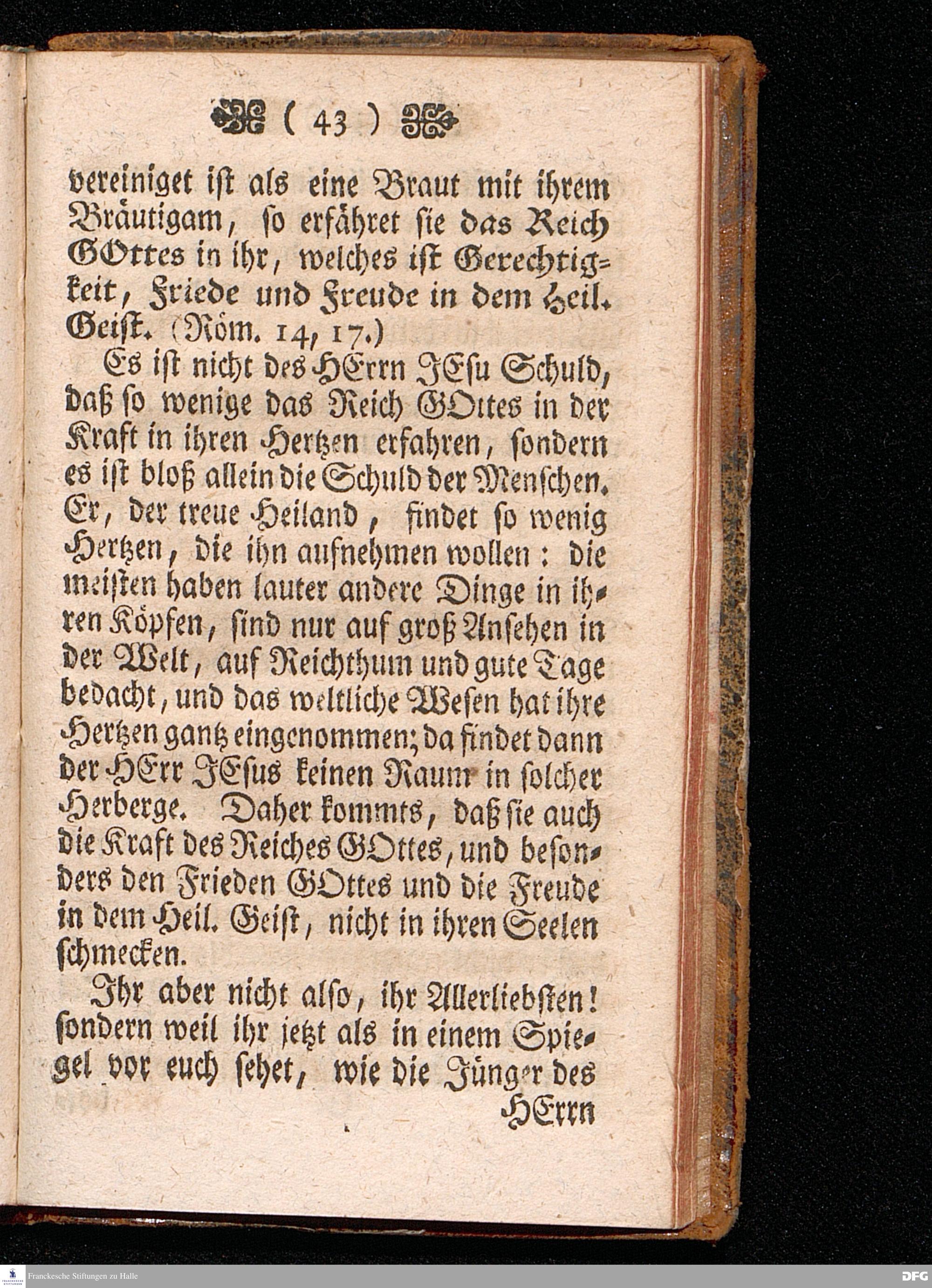 Spiegel der Aufnahme CHRISTI, In dem Exempel derer, die Ihn aufgenommen und nicht aufgenommen haben, Zur Nachfolge und Warnung, Am 1sten Advents=Sonntage A.1717. aus Matth.21, 1==9. In einer auf der Universität Tübingen liebreichst aufgetragenen, und in der Haupt=Kirche daselbst abgelegten Predigt vorgestellet Und auf Erfordern zum Druck gegeben von August Hermann Francken, S.Theol.Professore, Past. und Scholarcha zu Halle im Hertzogthum Magdeb. Vierte Auflage. In Verlegung des Wäysenhauses, 1744.