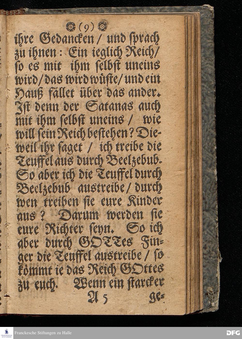 Der Untergang des Reichs des Satans in uns / als ein unbetrügliches Kennzeichen der wahren Bekehrung / Am Sonntag Oculi Anno 1699. In einer Predigt Uber das Evangelium Luc.XI, v.14--28. In der St.Georgen=Kirche zu Glaucha an Halle gehalten Und nunmehro zum andern mahl heraus gegeben von M.August Hermann Francken / S.S.Theol.P.Ord.& Past.Glauch. Halle / druckts Christ.Andreas Zeitler / Univ.Buchdr. 1702.