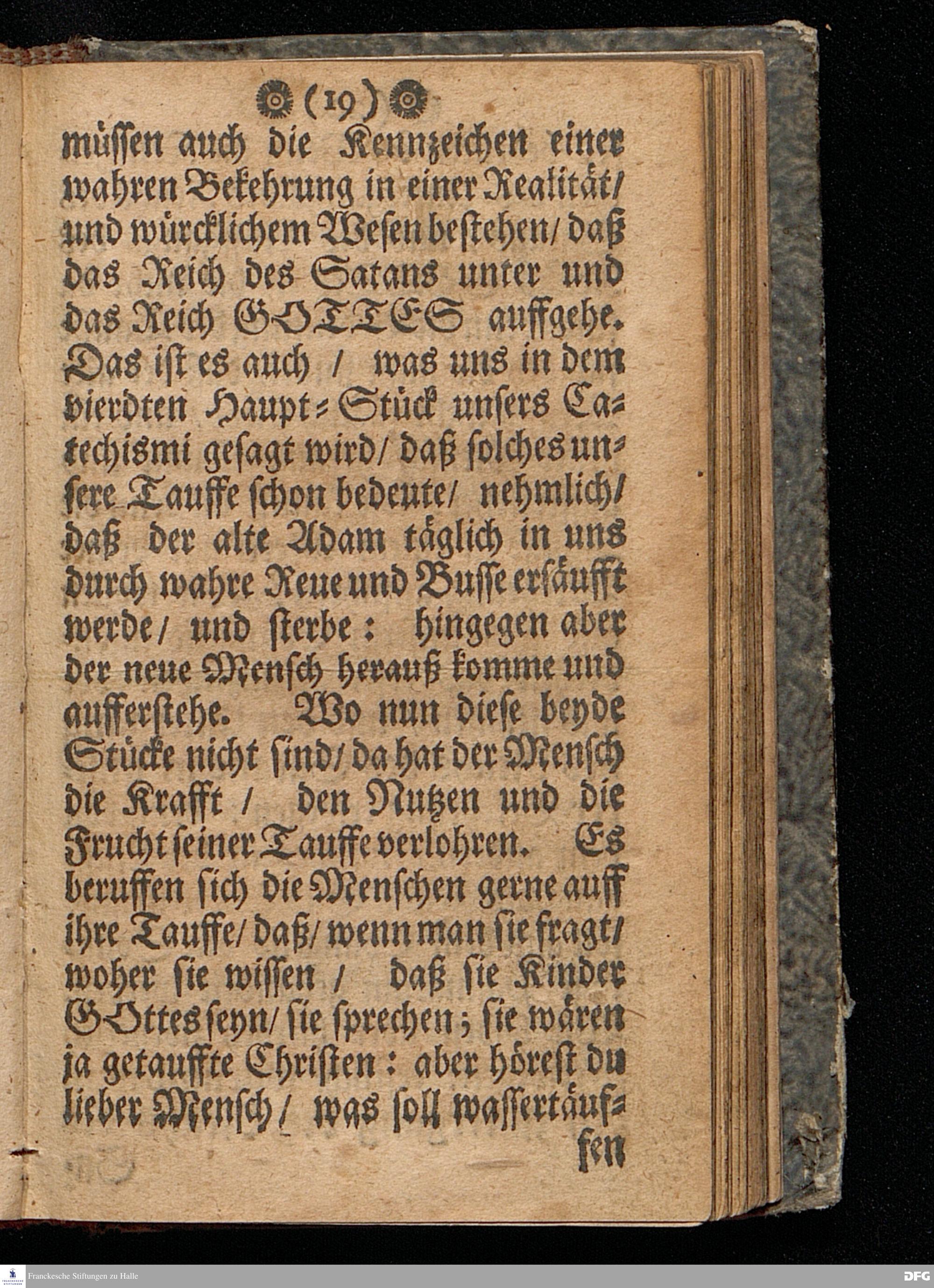 Der Untergang des Reichs des Satans in uns / als ein unbetrügliches Kennzeichen der wahren Bekehrung / Am Sonntag Oculi Anno 1699. In einer Predigt Uber das Evangelium Luc.XI, v.14--28. In der St.Georgen=Kirche zu Glaucha an Halle gehalten Und nunmehro zum andern mahl heraus gegeben von M.August Hermann Francken / S.S.Theol.P.Ord.& Past.Glauch. Halle / druckts Christ.Andreas Zeitler / Univ.Buchdr. 1702.